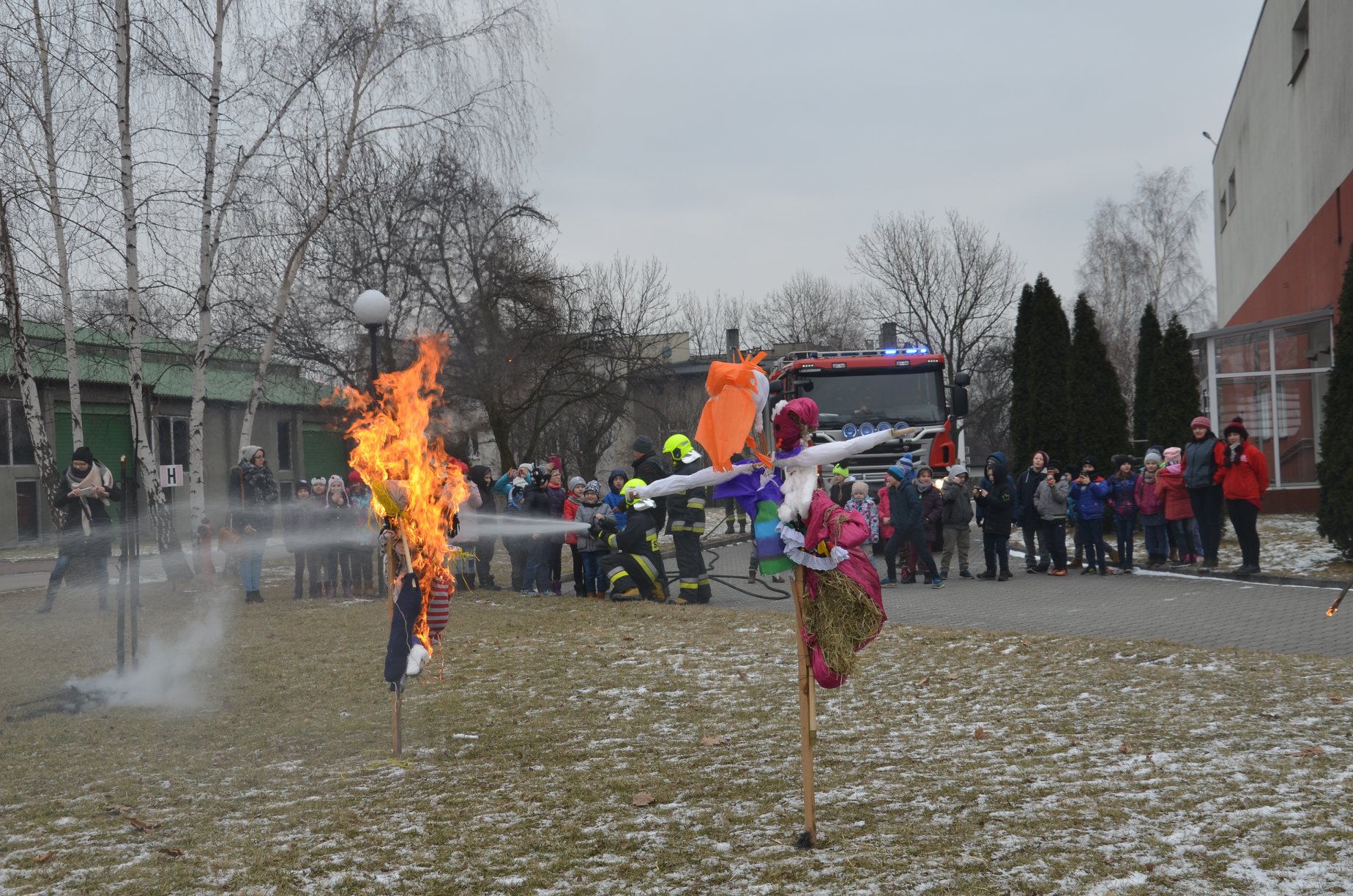 Uczniowie Szkoły Podstawowej nr 7 postanowili w tradycyjny sposób przywitać długo wyczekiwaną wiosnę. Znany od wieków rytuał palenia Marzanny został odprawiony bardzo widowiskowo – wszystko dzięki pomocy ochotniczych strażaków z Janowa oraz Centralnemu Muzeum Pożarnictwa.