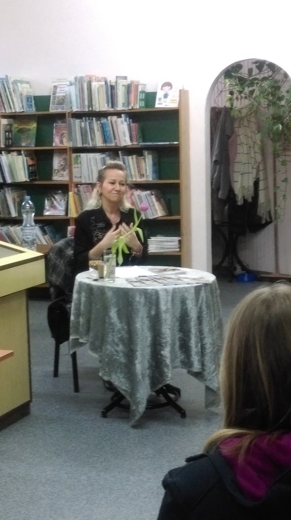 Podczas spotkania pisarka przeczytała kilka wierszy ze swojego pierwszego tomiku „Stany skupienia” oraz opowiadała o tym, jak rozwijała się jej pasja twórcza. Zaprezentowała też kilka nowych, niewydanych jeszcze utworów, dotyczących problematyki dzisiejszej młodzieży.
