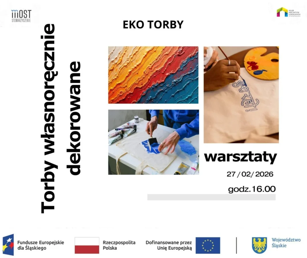 Już 27 lutego 2026 roku o godzinie 16:00 w Klubie Inicjatyw Lokalnych – Transformacja w Mysłowicach odbędą się bezpłatne warsztaty twórcze, podczas których uczestnicy własnoręcznie ozdobią torby zakupowe i nadadzą im niepowtarzalny charakter.
