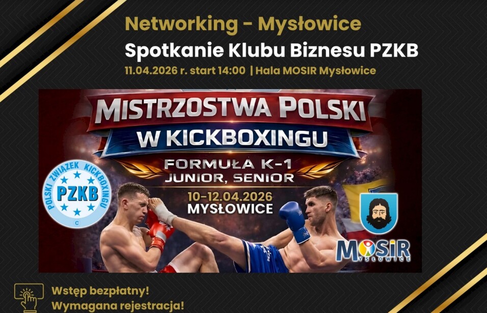 W Mysłowicach odbędzie się wyjątkowe spotkanie łączące świat sportu, biznesu i samorządu. Klub Biznesu Polskiego Związku Kickboxingu zaprasza przedsiębiorców na wydarzenie networkingowe, które towarzyszyć będzie Mistrzostwom Polski w Kickboxingu.