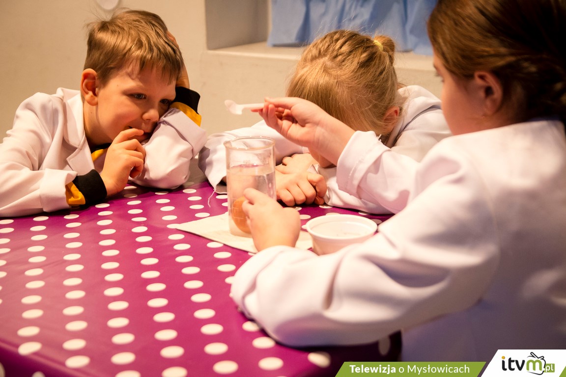 – Mamy przygotowaną mieszankę eksperymentów; fizyczne, chemiczne, biologiczne. Głównym zadaniem zajęć jest zapoznanie dzieci z nauką, żeby zobaczyły że to nie tylko jakieś puste wzory i teoria. Staramy się żeby wyglądało to jak w prawdziwym laboratorium, nie jakieś plastikowe kubeczki. Pracujemy na sprzęcie laboratoryjnym, prawdziwym – mówi Marta Kaczmarczyk z Doświadczalni