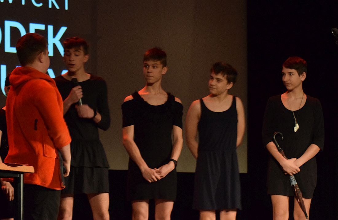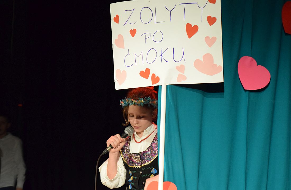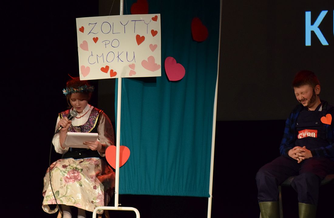 Były piosenki, monologi i teatralne scenki, np. z „Romea i Julii”, „Małego księcia” czy „Śpiącej królewny”. Wszystko oczywiście po śląsku. Uczniowie klas 4-8 SP10 zaprezentowali też m.in. gwarową wersję „Randki w ciemno” i pokazali, jak wygląda podryw po śląsku. Jako że „Gimgodka” odbywała się w walentynki, wszyscy młodzi artyści nawiązywali do miłości.