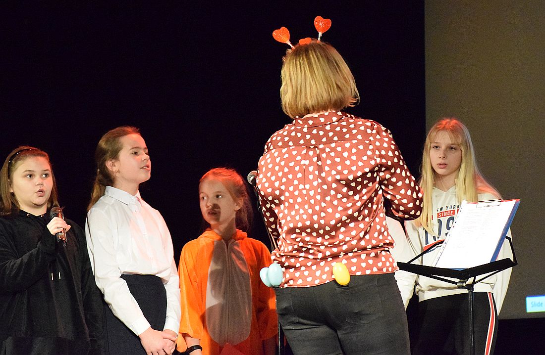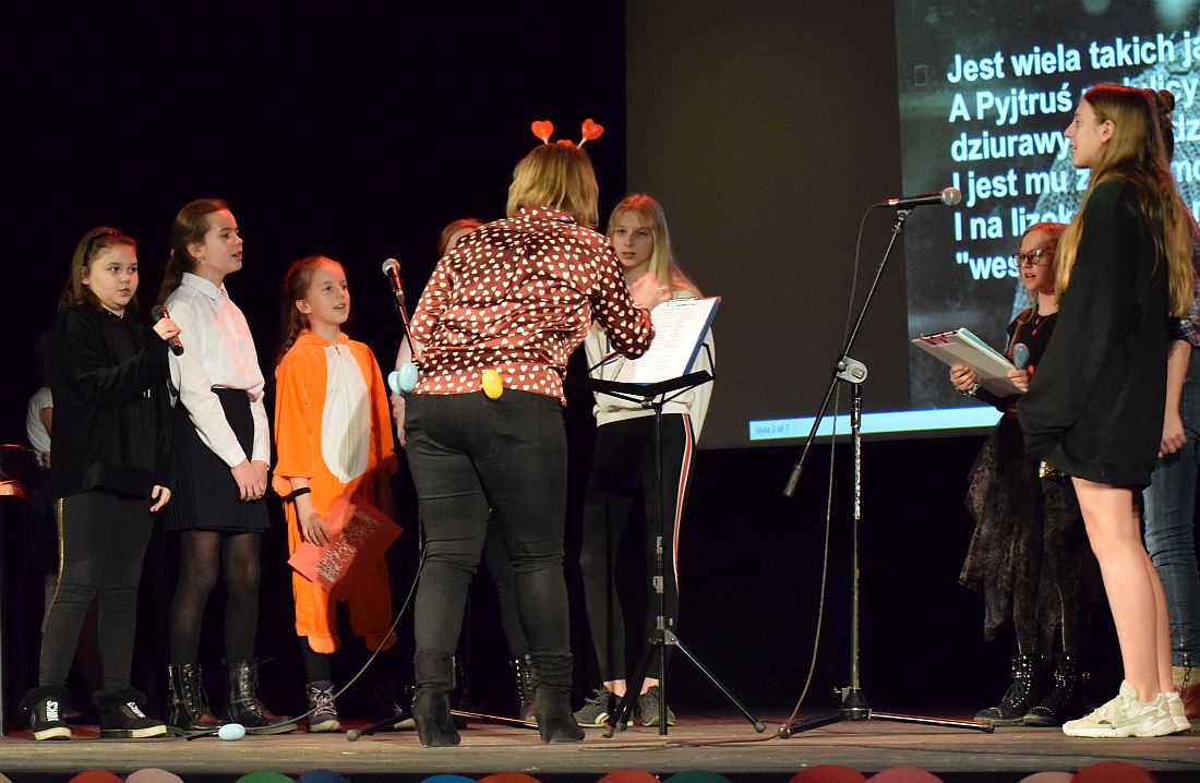 W przerwach między występami roznoszona była walentynkowa poczta i odbywał się konkurs wiedzy o śląskiej gwarze, w którym triumfowali przedstawiciele klas 7b i 5c. Zaśpiewały też szkolne zespoły: Zielone Nutki i Dyszka.