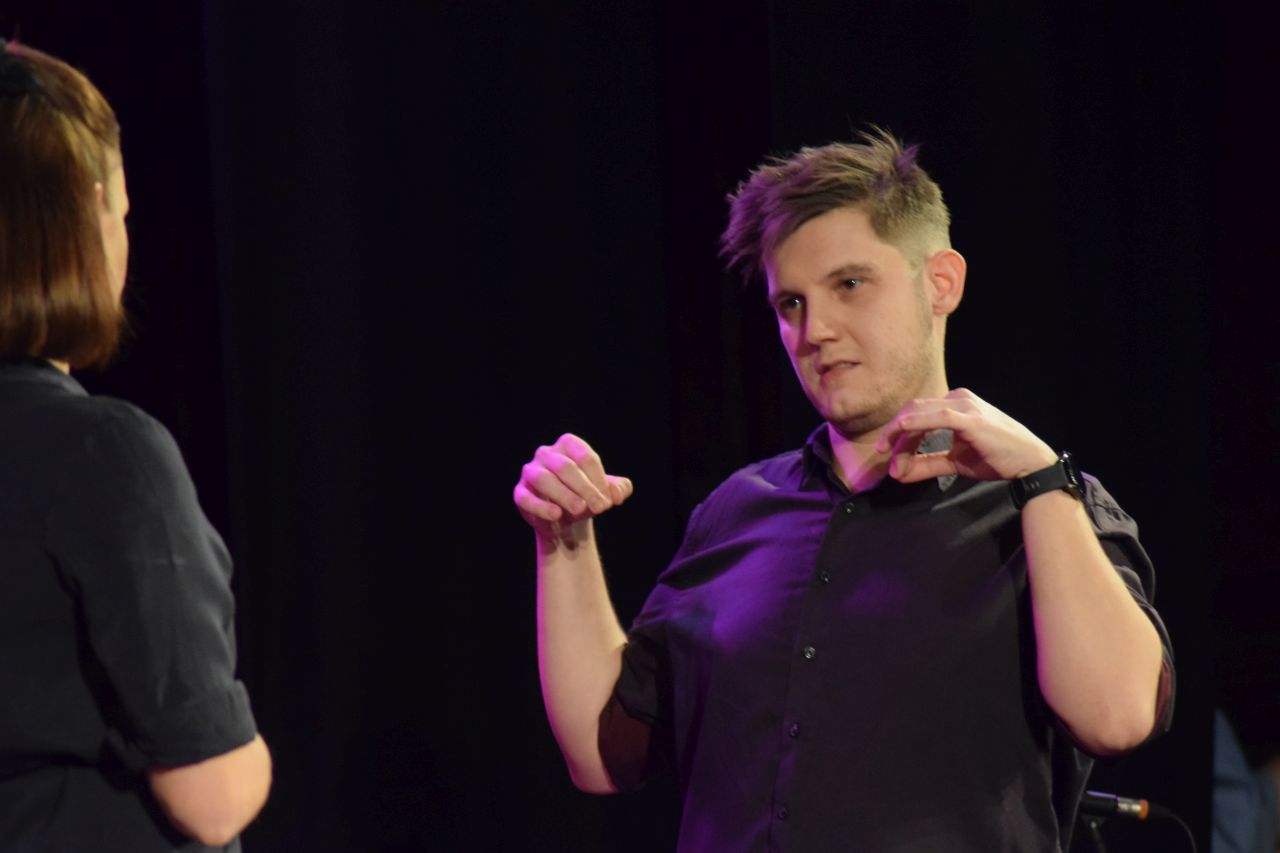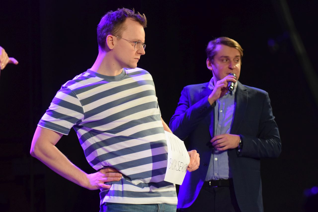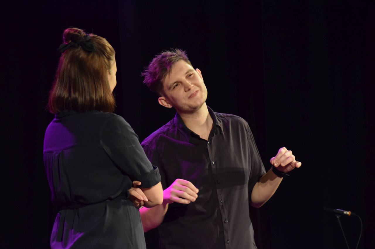 – Uczymy się czego na scenie nie robić, jak historię prowadzić tak, żeby każdy wiedział, o co chodzi, jak nie blokować partnerów, jak pomagać partnerom, jak grać na partnera, jak wyciągać z propozycji partnera to, co jest ciekawe i chcemy grać dalej – mówi Michał Kirker z Bez Puenty Impro.