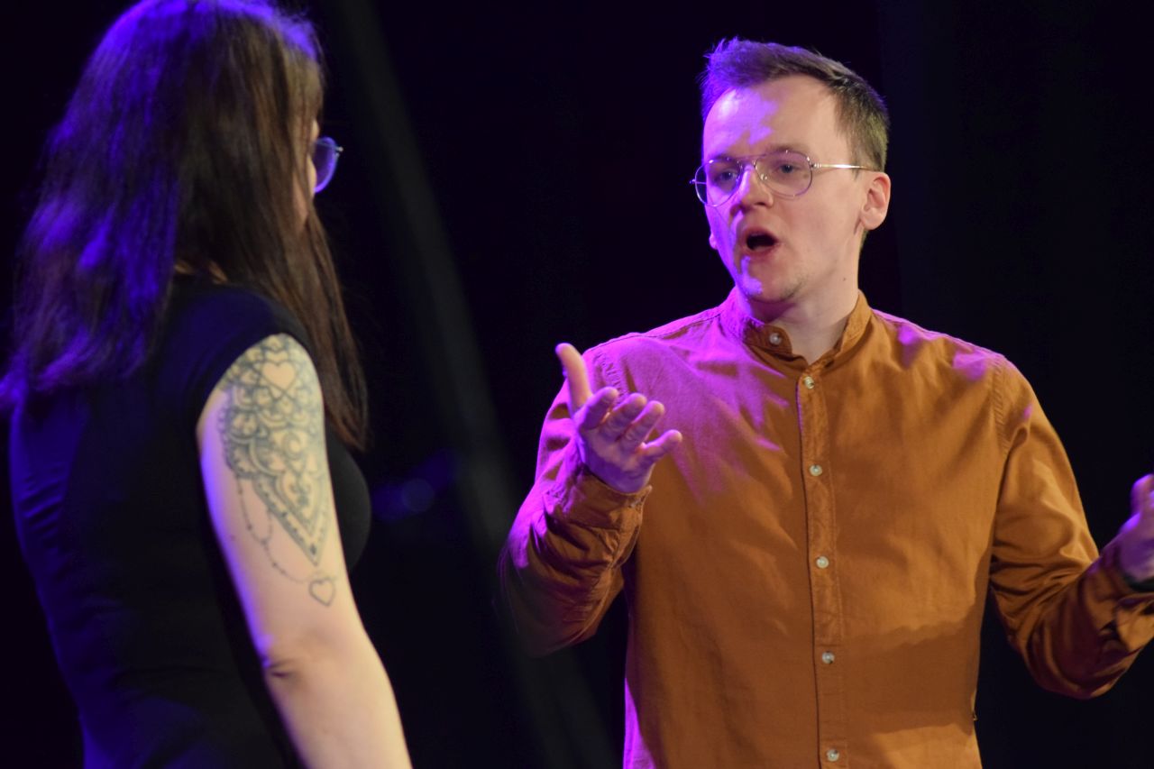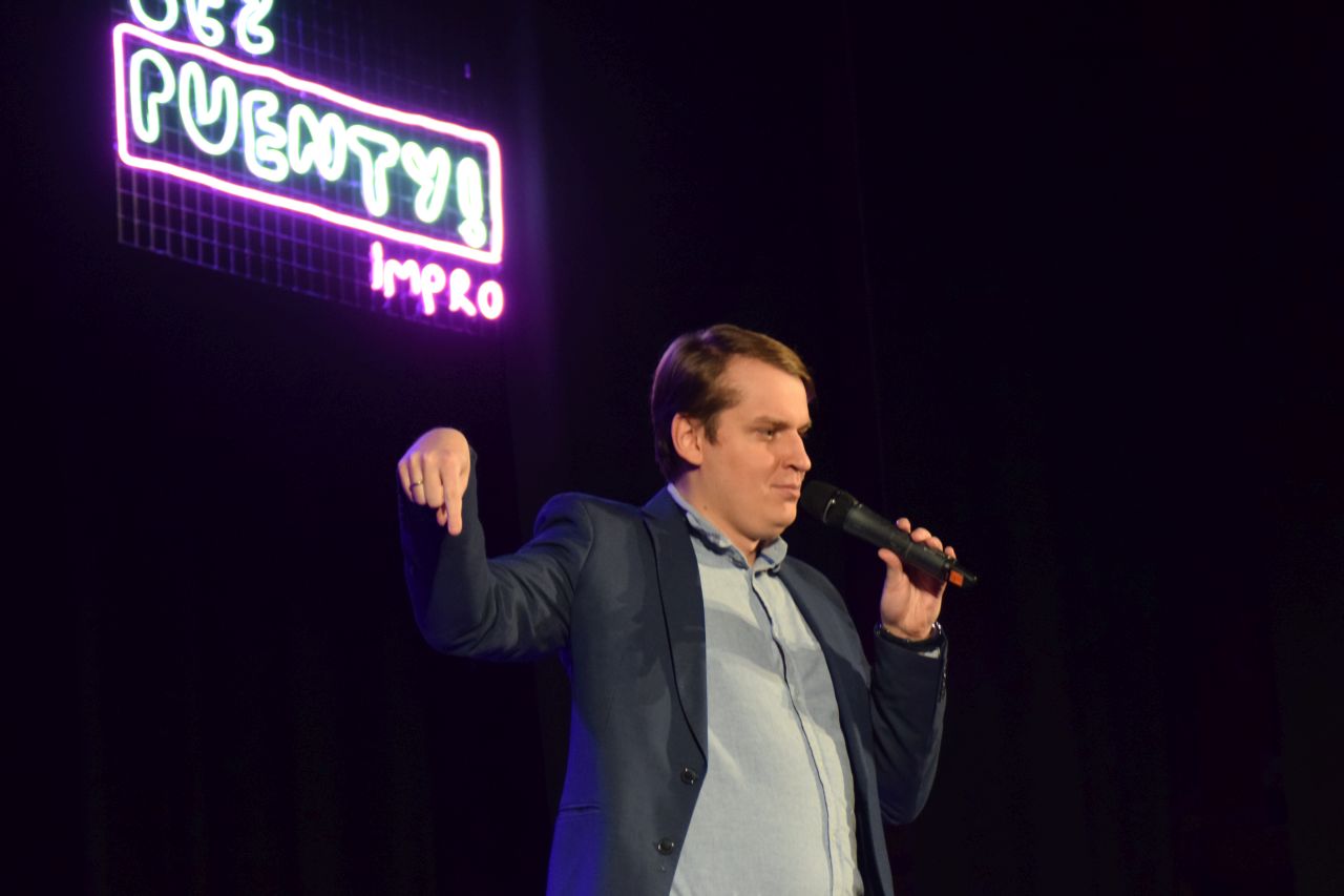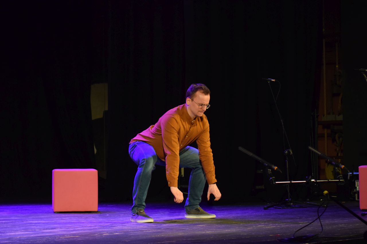 – Uczymy się czego na scenie nie robić, jak historię prowadzić tak, żeby każdy wiedział, o co chodzi, jak nie blokować partnerów, jak pomagać partnerom, jak grać na partnera, jak wyciągać z propozycji partnera to, co jest ciekawe i chcemy grać dalej – mówi Michał Kirker z Bez Puenty Impro.