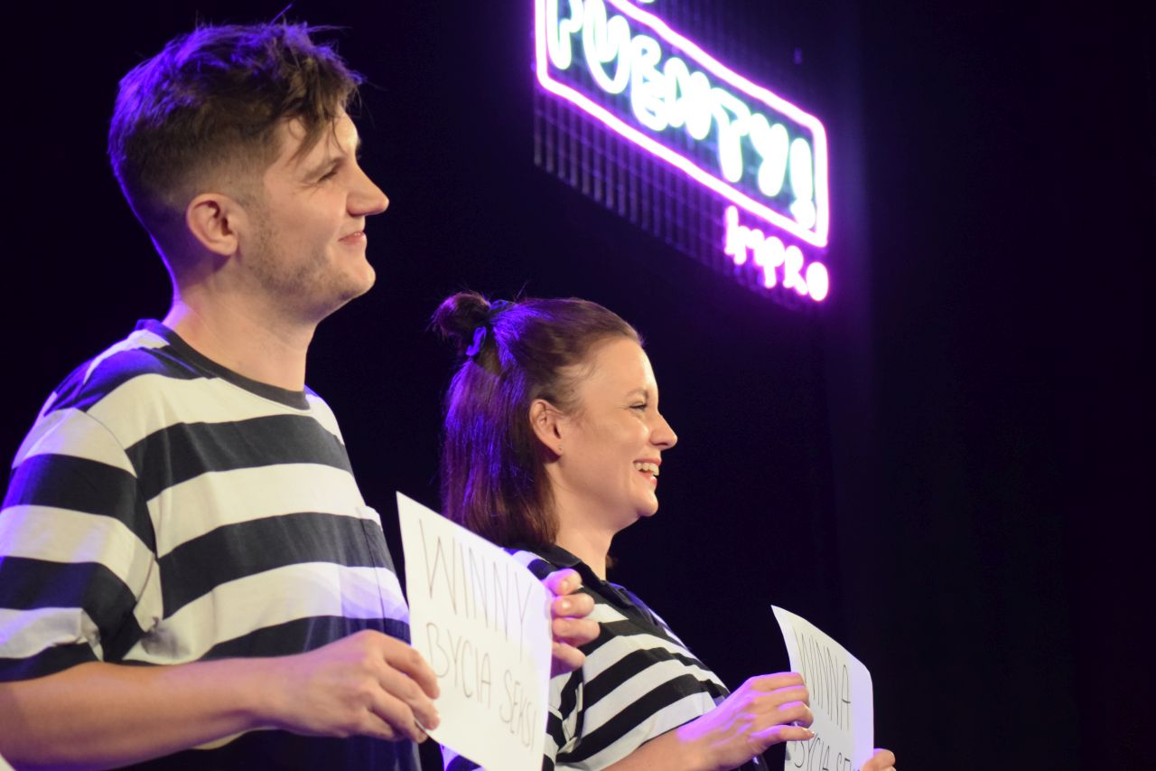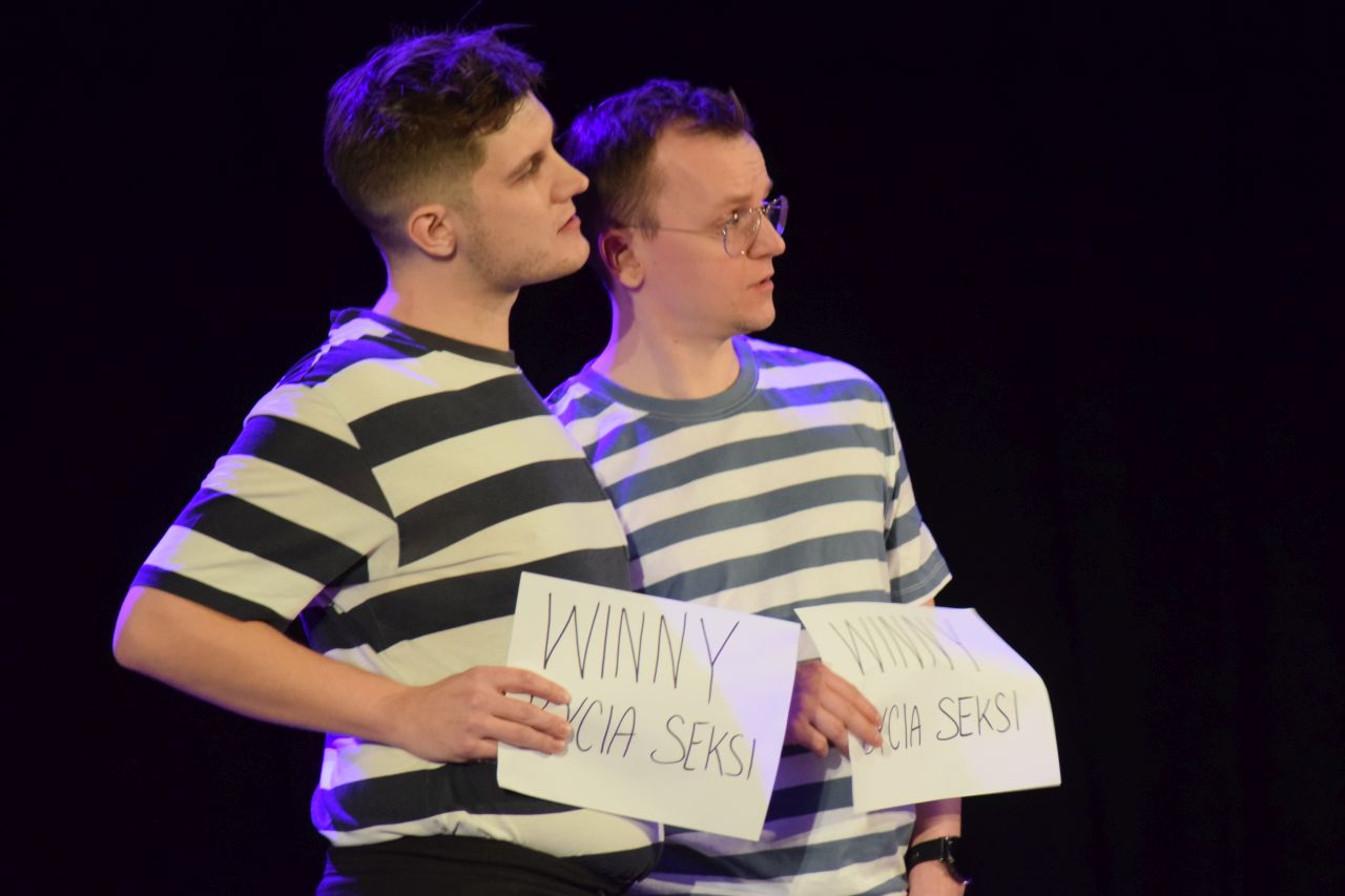 Tym razem bohaterzy spektaklu to byli osadzeni skazani za bycie „seksi”. Zobaczyliśmy m.in. historię dwóch mężczyzn, których połączyła miłość do pierogów, bywalca siłowni na sterydach, DJ-a i dwóch kobiet z nieco osobliwymi preferencjami. Było nieco pikantnie i przede wszystkim zabawnie. Oczywiście bez ustalonego wcześniej scenariusza.