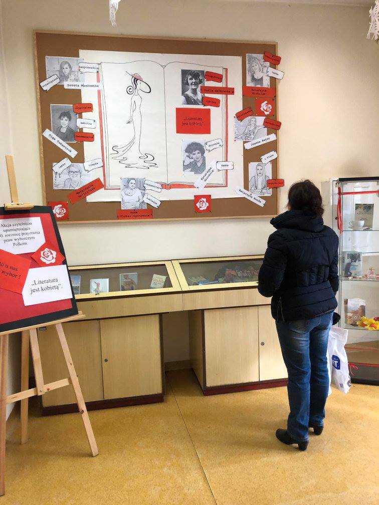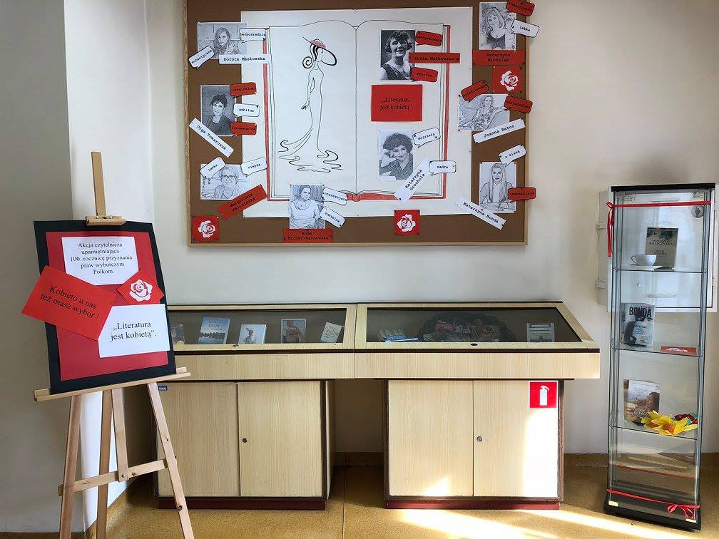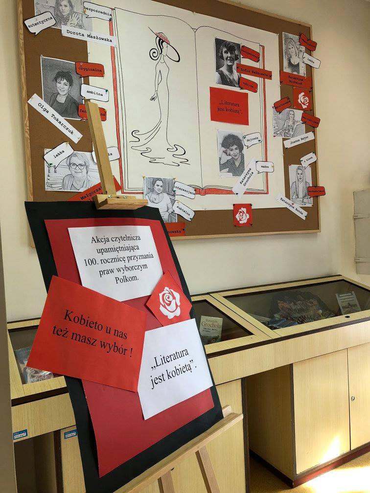 Pierwszym elementem świętowania jubileuszu „kobiecego roku” jest akcja czytelnicza „Literatura jest kobietą“, która przez cały miesiąc w formie wystawy akcentuje polskie autorki – reprezentantki różnych okresów, form literackich, gatunków i stylów pisarskich z towarzyszącymi im hasłami – cechami, jakie dookreślają ich charakter i walory ich twórczości. Bo tak jak kobieta, tak i literatura ma wiele twarzy, począwszy od Zofii Nałkowskiej zaangażowanej i wybitnej, poprzez Olgę Tokarczuk – ambitną i oryginalną, Katarzynę Michalak – lekką i romantyczną po Katarzynę Bondę – zaskakującą i z klasą oraz wiele innych mistrzyń pióra – wystawa stara się dookreślić cechy polskiej literatury.