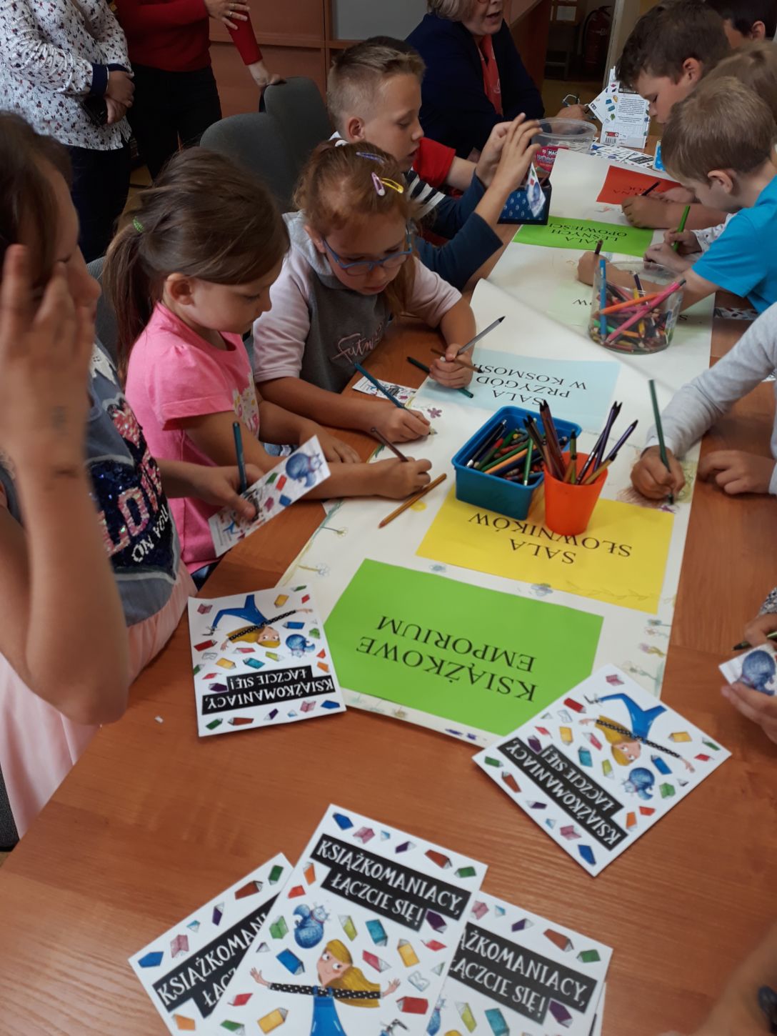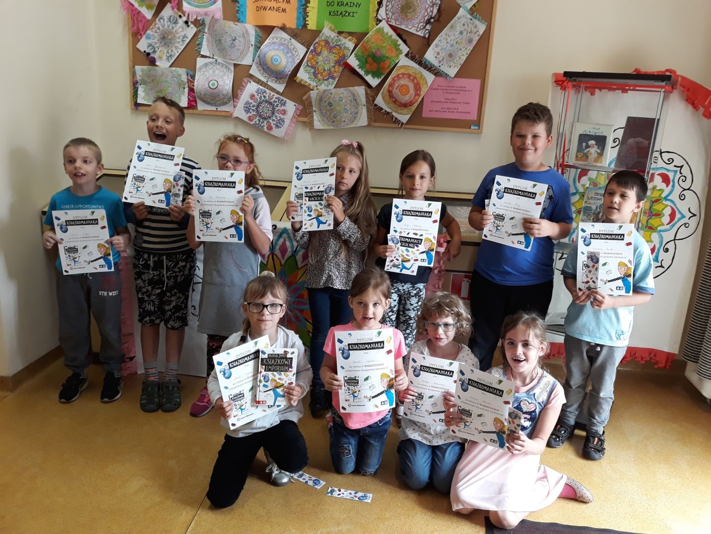 Po rozmowie o znaczeniu i wartości czytania oraz zainteresowaniu dzieci książką i biblioteką, uczniowie otrzymali pocztówki do Znajdy, na których w formie listu z pomocą rodziców albo namalowanego obrazka mają przekazać dziewczynce wskazówki na skuteczną naukę czytania. Warsztaty zakończyło wspólne wykonywanie pracy plastycznej – olbrzymiej mapy Książkowego Emporium, wręczenie „Dyplomów Książkomaniaka” i grupowe zdjęcia. Pozytywna ocena relacji z przeprowadzonych warsztatów będzie podstawą do tego, by mysłowicka biblioteka przeszła do następnego etapu i zdobyła nagrodę główną w postaci pakietu nowych książek i promocji wydarzenia w ogólnopolskim portalu branżowym „Lustro Biblioteki”.