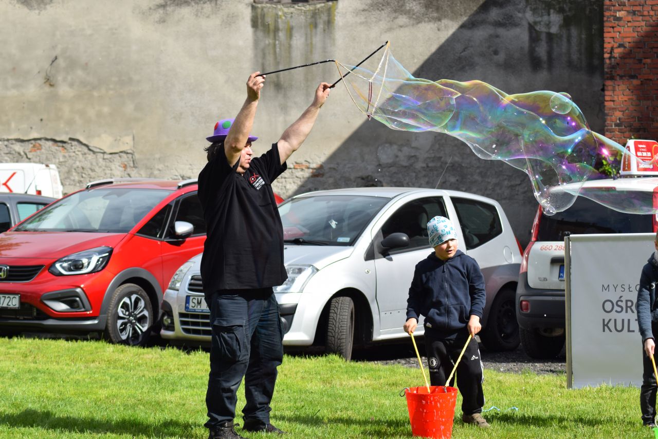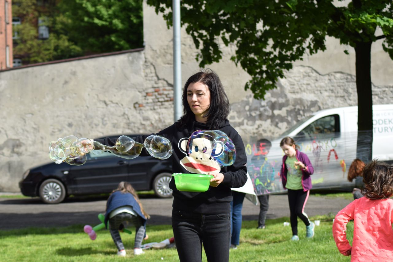 W czwartek 27 maja czarowanie miało miejsce na placu pomiędzy ul. Świerczyny a Sobieskiego na Piasku. Animatorzy Mysłowickiego Ośrodka Kultury zapewnili tutejszym mieszkańcom mnóstwo atrakcji: mogli wyżyć się artystycznie, potrenować grę w szachy czy kuglarskie sztuczki. Były bańki mydlane, konkursy z nagrodami, pizza i słodkości od sponsorów, zabawy z MOKusiem, a koncert na podwórku dał Happy Big Band.
