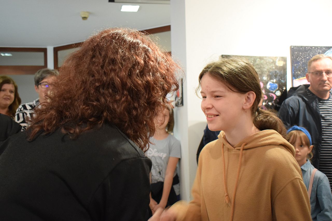 Wernisaż był wydarzeniem niezwykle rodzinnym. Dzieciaki z dumą prezentowały najbliższym swoje dzieła i pozowały na ich tle. Nie ukrywały też radości z tego, jak wiele udało im się przez ten rok nauczyć.