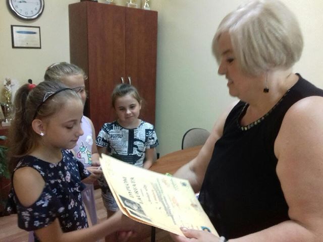 Laureatki ze Szkoły Podstawowej nr 10 nie mogły pojawić się na uroczystym wręczeniu nagród. Odebrały je w szkole z rąk dyrektor Marioli Czypionki. Zdjęcia nadesłane.