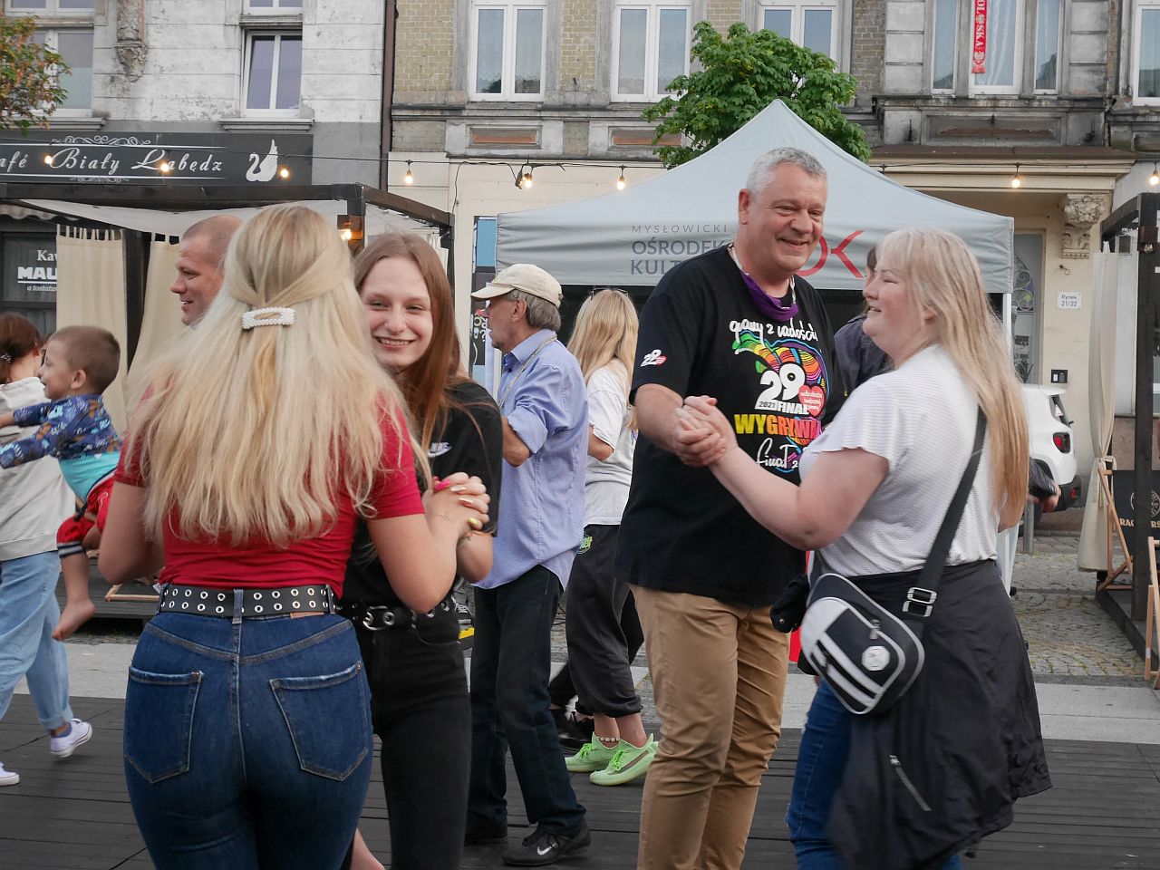 W miniony piątek na rynku mysłowiczanie bawili się podczas potańcówki. Początkowo tylko dzieci, ale im bardziej się ściemniało, tym więcej dorosłych było widać na parkiecie ustawionym w sercu naszego miasta.