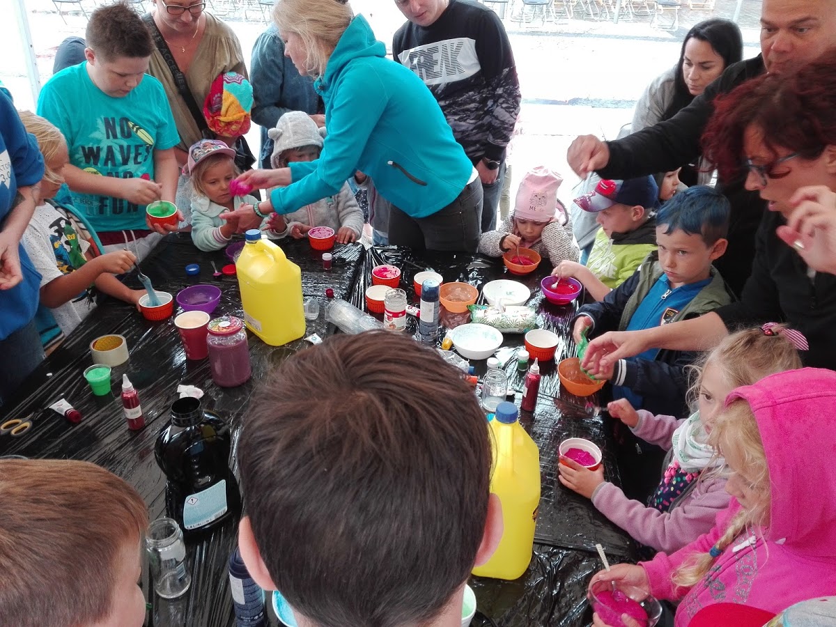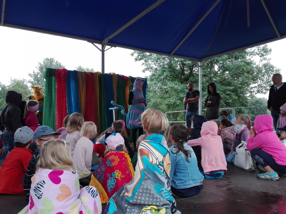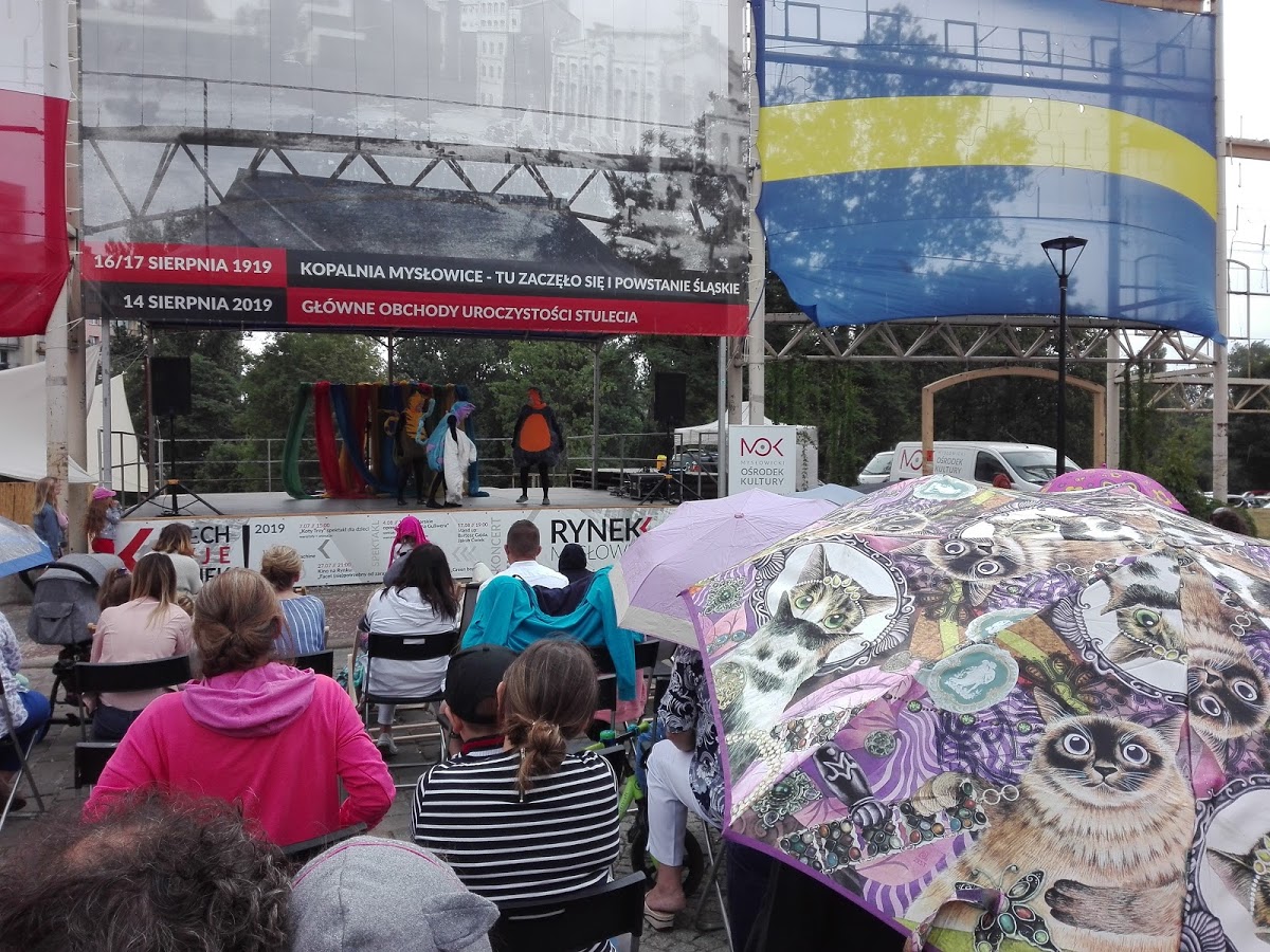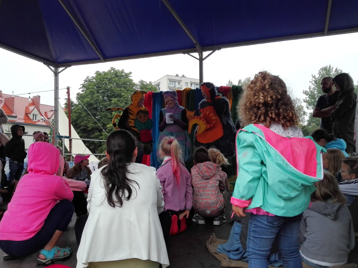 Co prawda pogoda w niedzielę nie rozpieszczała przybyłych na mysłowicki rynek, ale nie zraziło to publiczności, która schowała się pod parasolami. Aktorzy zaprosili dzieci na zadaszoną scenę, gdzie po spektaklu miały miejsce także animacje ze slime’ami. Z kolei teatr Epidemia przygotował dla najmłodszych warsztaty robienia wielkich baniek mydlanych.