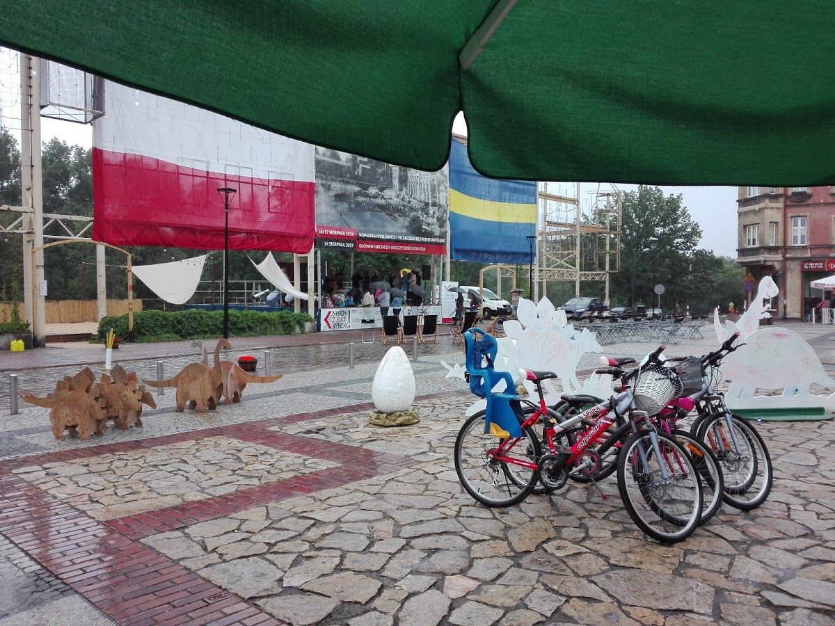 – Istniejemy od 25 lat. Jesteśmy teatrem pantomimy, który poza spektaklami i widowiskami scenicznymi wykonuje też animacje. Po przerwie wróciliśmy do współpracy z MOK-iem. Na niedzielę przygotowaliśmy przestrzenny plener malarski związany z epoką dinozaurów. W strefie chilloutu był zakopany szkielet dinozaura i wielka skamielina, były też puzzle 3D z dinozaurami oraz duże kręgle jak u Flinstonów. Niestety pogoda spłatała nam figla – mówi Michał Sabat z teatru Epidemia.