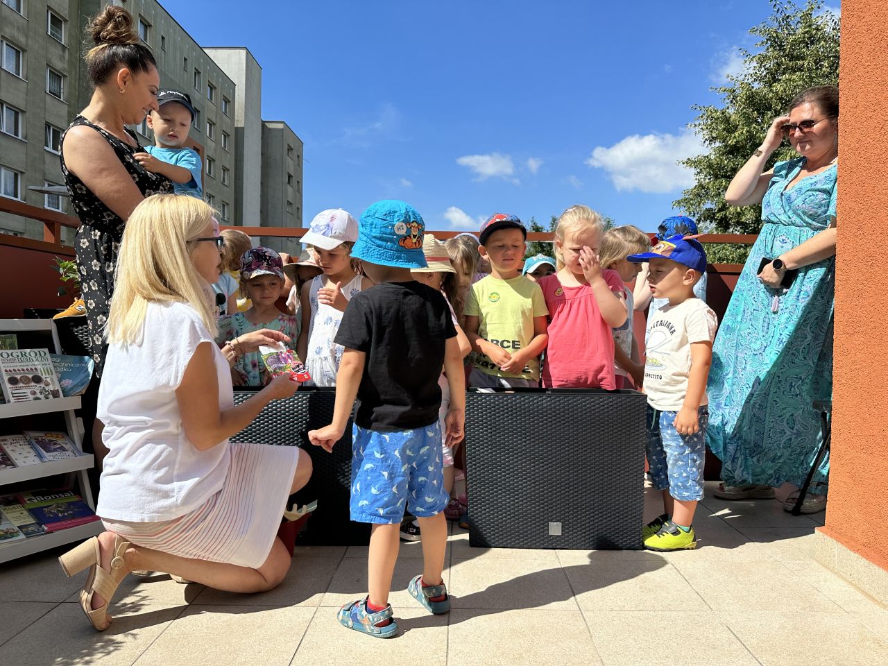 „Czytelnia pod chmurką” ma być miejscem przyjaznym miłośnikom literatury, zachęcającym do odwiedzania książnicy, ale także strefą integracji międzypokoleniowej i edukacji ekologicznej. Pierwszym krokiem w tym kierunku było zasianie ostróżki i kwietnej nanołączki w donicach na tarasie i pierwsze biblioteczne animacje na świeżym powietrzu podczas otwarcia „Czytelni pod chmurką” we wtorek 11 lipca, w których wzięły udział maluchy z Przedszkola nr 12.
