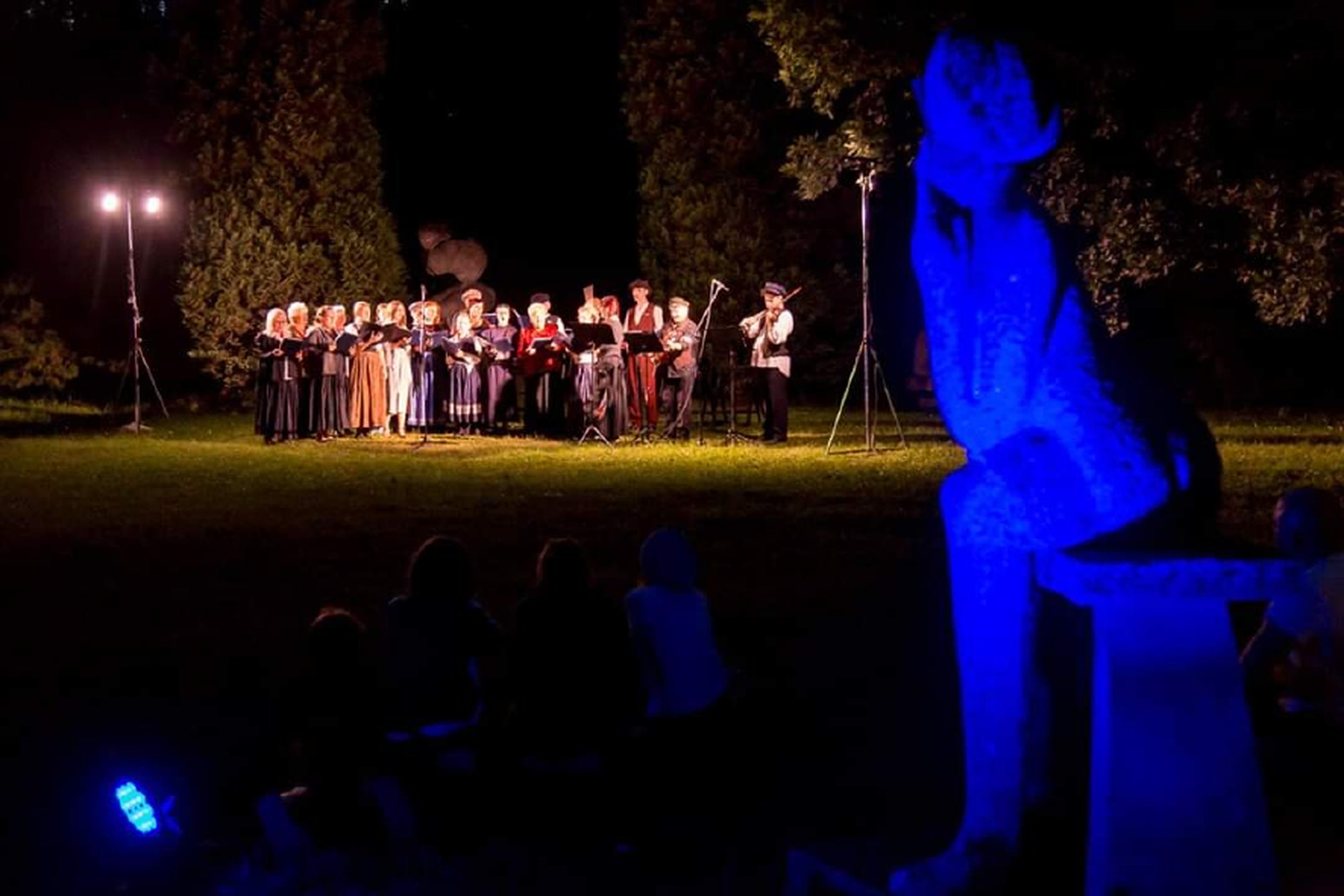 Barwnie podświetlone rzeźby i drzewa „ożywały” na chwilę i można było usłyszeć fragmenty fabularyzowanego filmu dokumentalnego „Franek”, którego projekcja jest jedną z atrakcji stałej ekspozycji w Muzeum Powstań Śląskich, oraz utworów Marii Konopnickiej, Kazimierza Ligonia czy Williama Shakespeare’a. Głosu niewidzialnym postaciom użyczyli aktorzy Teatru Śląskiego. „Na żywo” wystąpiła Barbara Lubos oraz sopranistka Ewa Lobocz.