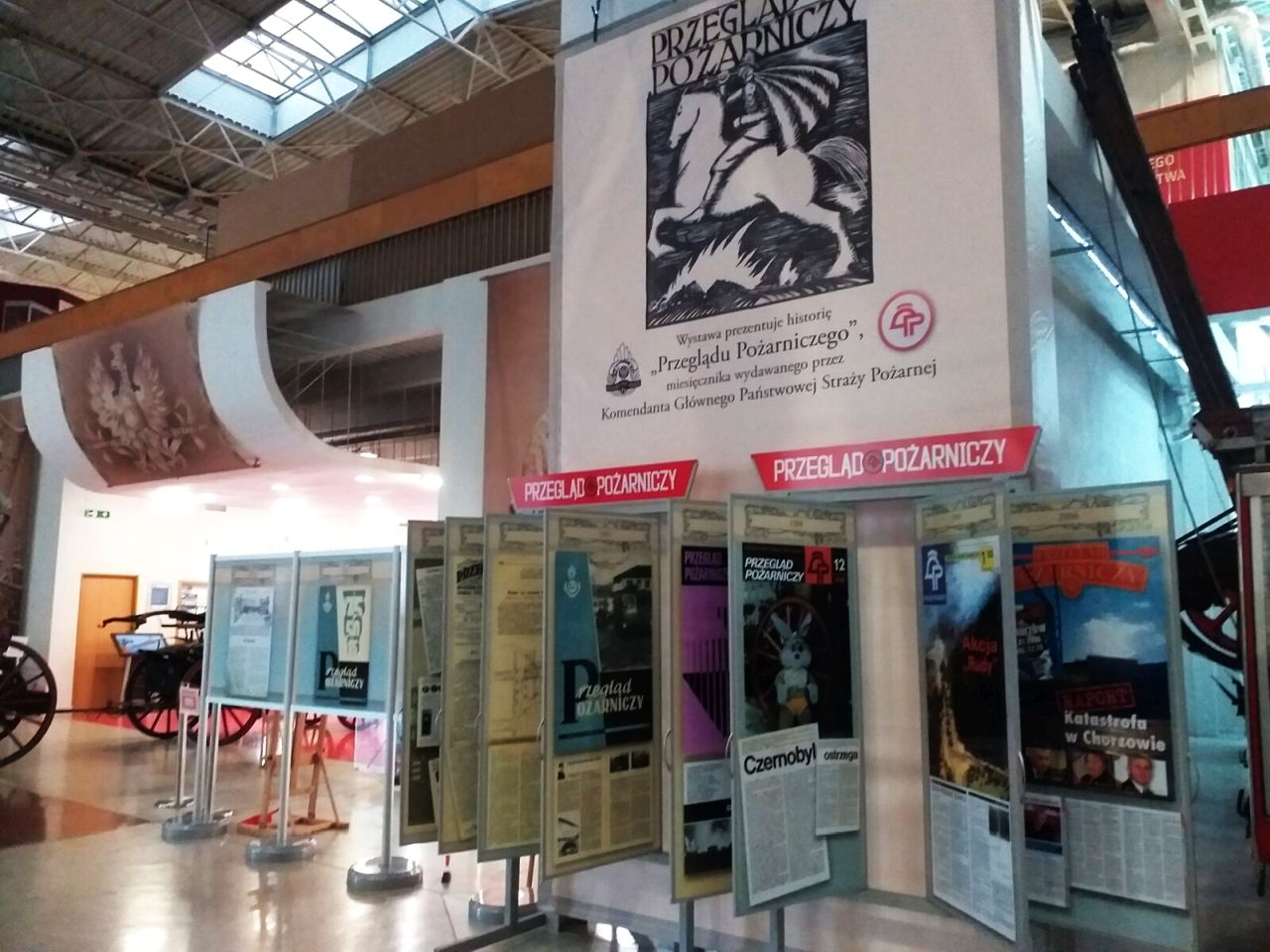 Z uwagi na rangę miesięcznika, wydawanego przez Komendanta Głównego Państwowej Straży Pożarnej, wystawa ma charakter ekspozycji stałej. Zwiedzający z łatwością zauważą tytuł, ponieważ informuje o tym wielkoformatowy baner w hali nr 2, przedstawiający historyczną grafikę „Przeglądu Pożarniczego”. Pod banerem zbudowano czytelnię „Przeglądu”. To 16 obszernych tablic imitujących strony pisma, na których zamieszczono przykładowe treści z różnych wydań, ułożone chronologicznie. Zwiedzający zapoznają się m.in. z pieśniami strażackimi z 1913 r., z nowinkami technicznymi, jakimi były aparaty przeciwdymne w latach 20. XX w., z historycznymi akcjami (jak m.in. pożar dworca głównego w Warszawie w 1939 r.) oraz przeczytają wywiad ze Zbigniewem Bródką, strażakiem PSP i mistrzem olimpijskim w łyżwiarstwie szybkim.