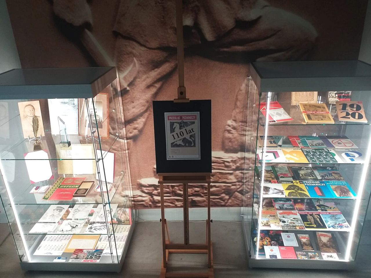 W środku wystawy, na planszach edukacyjnych, przedstawiono historię prasy pożarniczej w Polsce. Najwięcej miejsca poświęcono oczywiście historii samego „Przeglądu Pożarniczego”. Zaprezentowano losy pisma na tle wydarzeń XX w., czyli dwóch wojen światowych, pierwszych lat niepodległości i funkcjonowania pisma w realiach PRL.