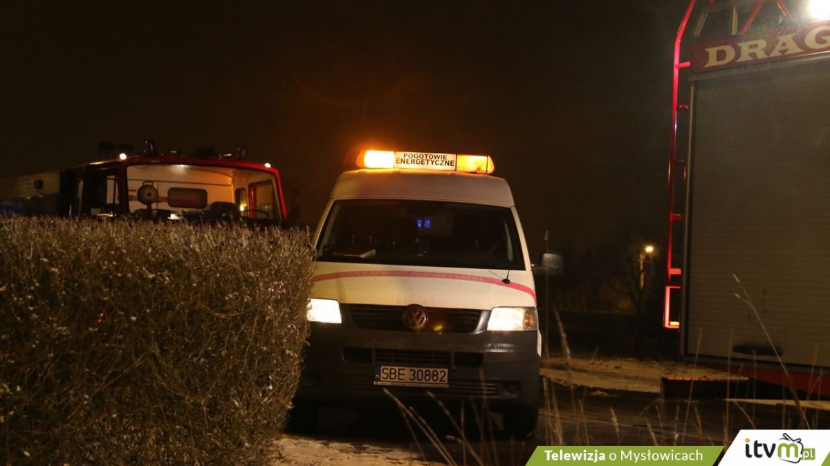 Podczas uderzenia w słup energetyczny doszło do zerwania kabla z prądem. Usunięciem awarii zajmuje się pogotowie energetyczne.