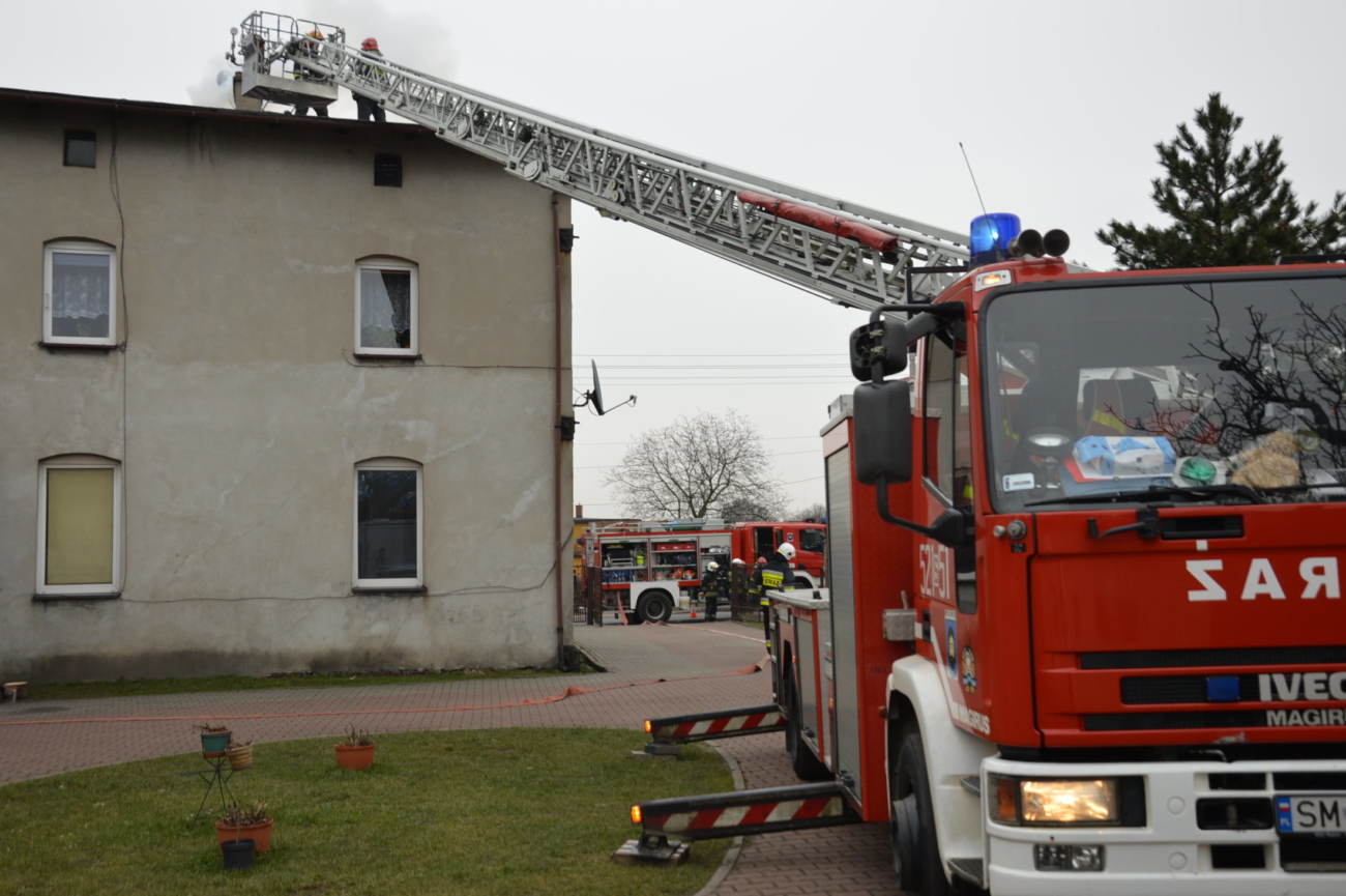Działania kontynuowali strażacy z dwóch jednostek, konieczne było także użycie samochodu z drabiną.