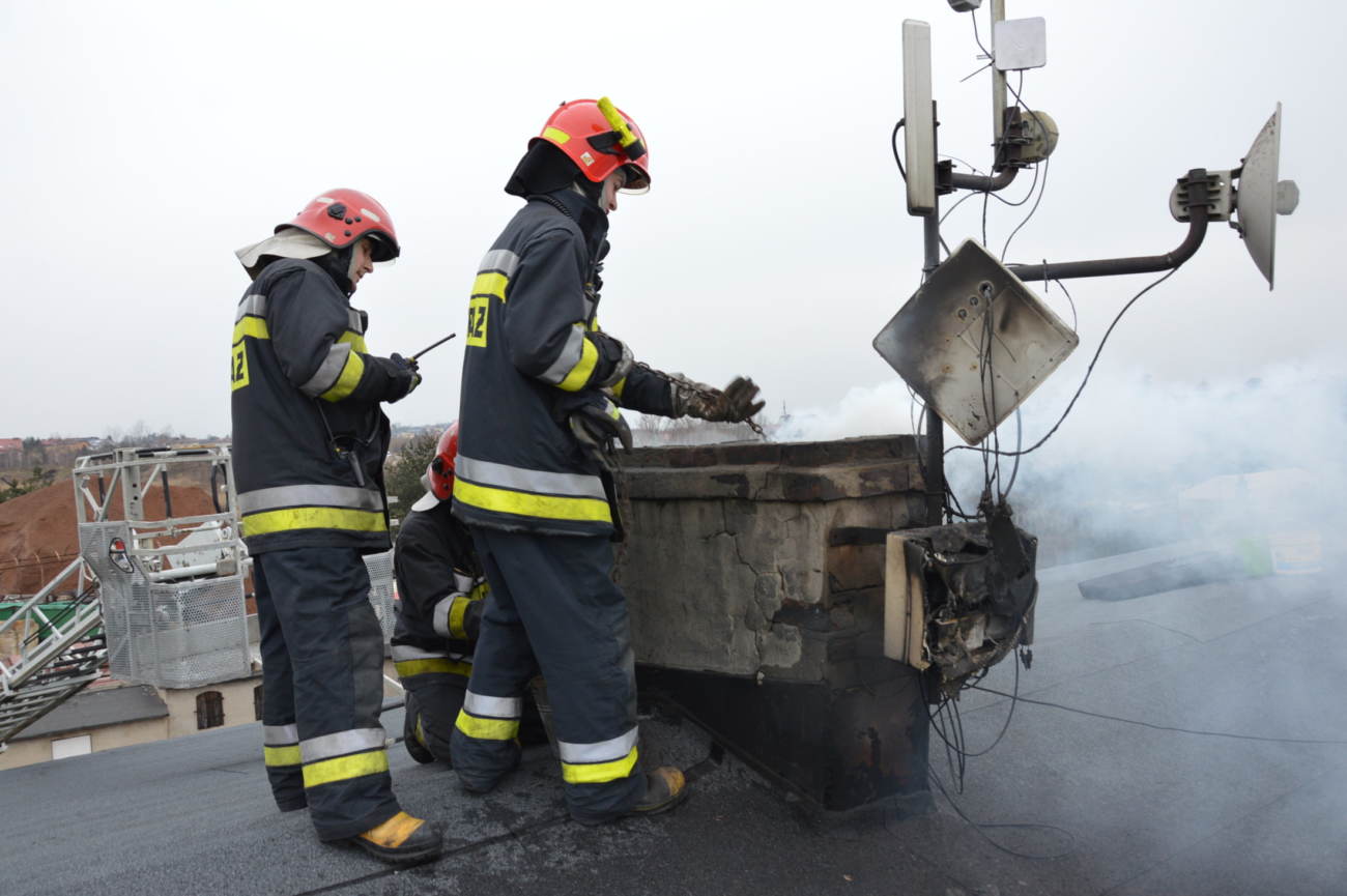 – Na skutek tego typu pożaru temperatura przewodu kominowego potrafi osiągać od 800 do nawet 1000 stopni. Jeśli pożar sadzy nie zostanie szybko ugaszony istnieje duże ryzyko uszkodzenia przewodu kominowego. Taki pożar może być bardzo niebezpieczny – jeśli w pobliżu przewodu kominowego znajdują się drewniane elementy konstrukcyjne, mogą się one szybko zapalić. Ogień może przejść także na konstrukcję dachu – wyjaśnia mł. bryg. Wojciech Chojnowski