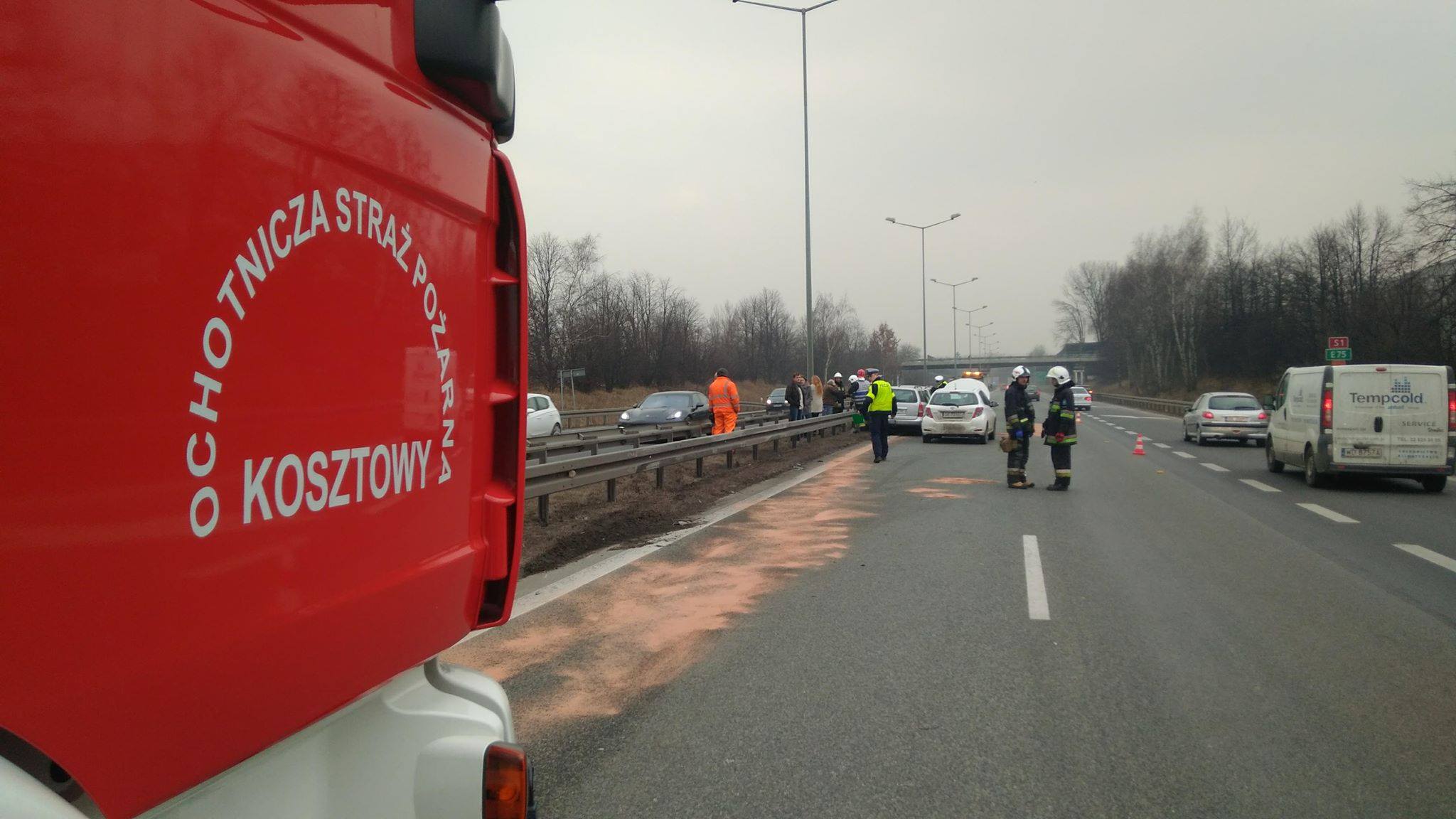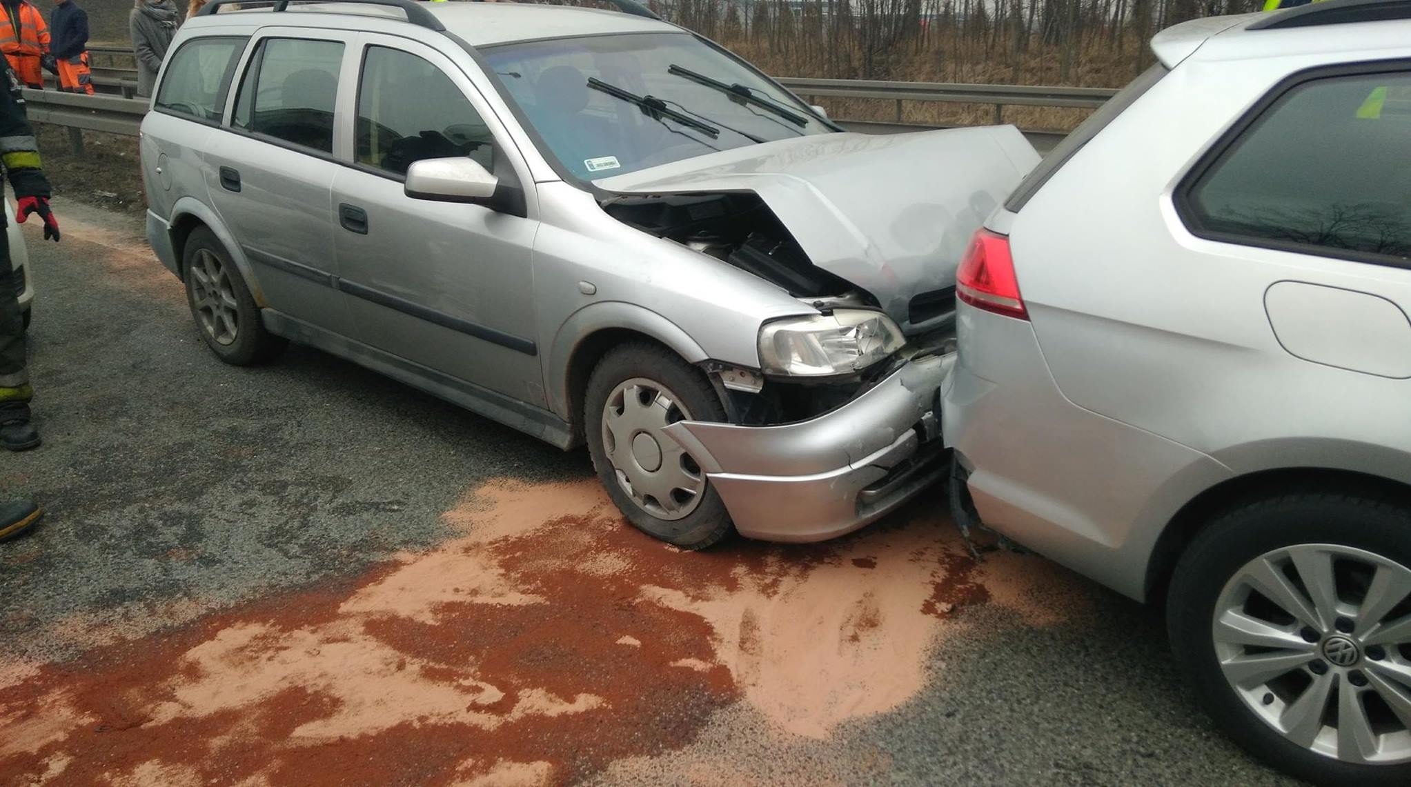 Kierujący Toyotą Yaris 21 letni mieszkaniec Imielina zauważył kolizję i postanowił zwolnić. Podobnie postąpił jadący za nim 36-letni kierowca z Imielina. Prędkości nie dostosował jednak trzeci z kolei kierujący, 67-letni mieszkaniec Międzybrodzia Bielskiego, który prowadził pojazd marki Opel Astra. Ostatni z kierowców nie wyhamował na czas i dobił do pojazdu marki Volkswagen Golf, ten pchnięty uderzył z kolei w samochód marki Toyota Yaris, który wylądował ostatecznie na barierkach energochłonnych. Na szczęście i w tej kolizji obyło się bez poważniejszych obrażeń. W zdarzeniach interweniowały dwa zastępy straży pożarnej – PSP oraz OSP Kosztowy.