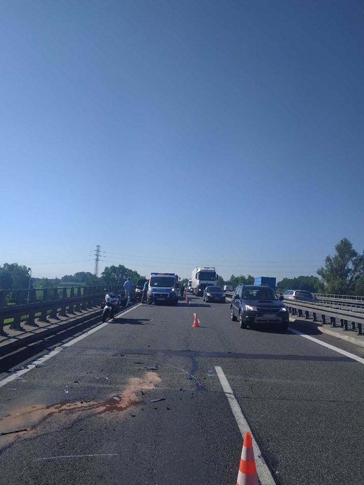 O godz. 6.40 na trasie S1 na wysokości Mysłowic, na 549 km w kierunku Warszawy, zderzyły się opel i toyota.