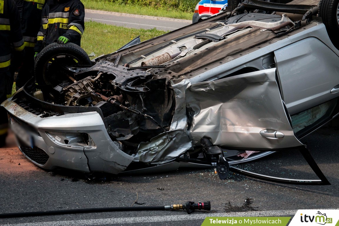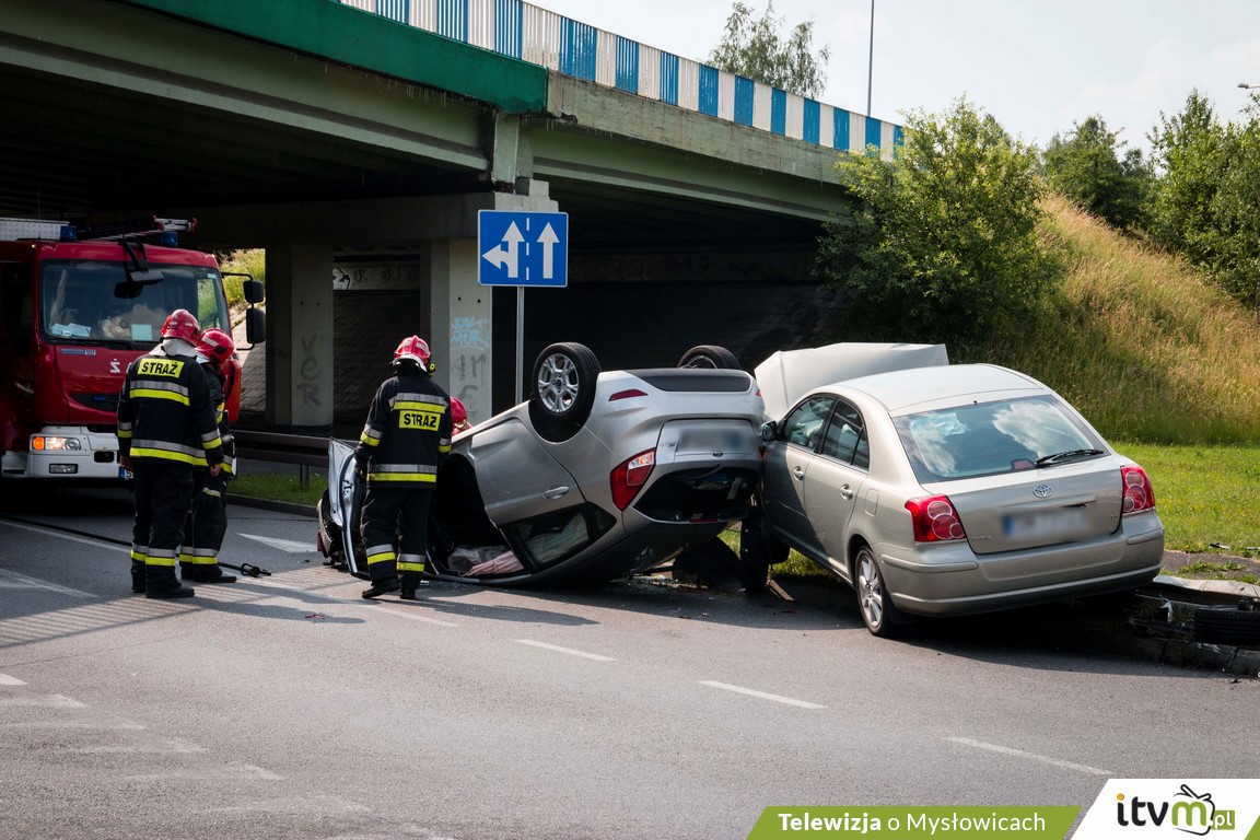 Do zderzenia dwóch pojazdów osobowych doszło w poniedziałek (11.06) około godziny 15:30 na skrzyżowaniu ulic Mikołowskiej i Obrzeżnej Zachodniej. Siła zderzenia była tak duża, że jeden z pojazdów dachował.