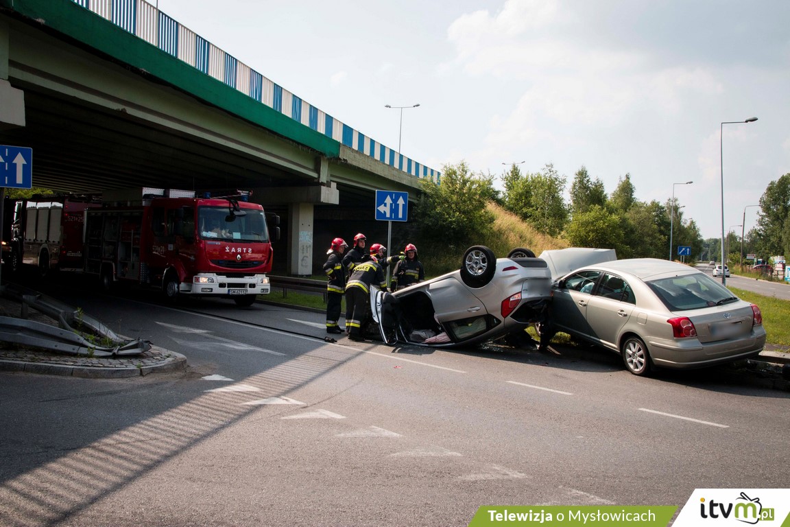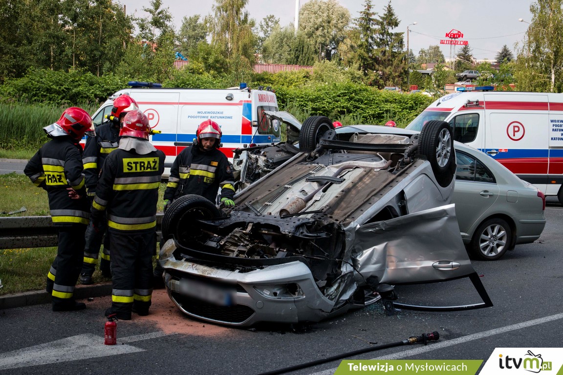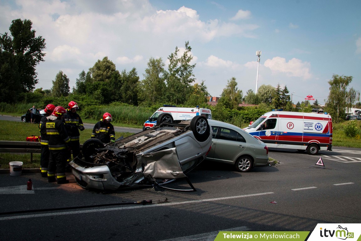 Toyotą kierował 46-letni mysłowiczanin. W wyniku kolizji poszkodowane zostały dwie kobiety: kierująca Fordem (pojazd dachował) oraz pasażerka z Toyoty, 46-letnia kobieta.