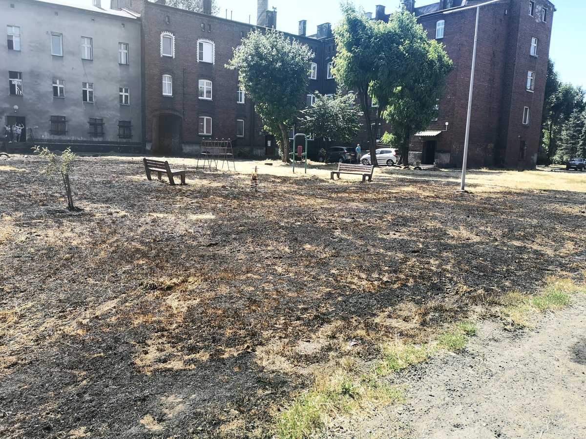 Dzisiaj po godzinie 14 na placu zabaw przy ulicy Świerczyny 10 doszło do pożaru suchej trawy.