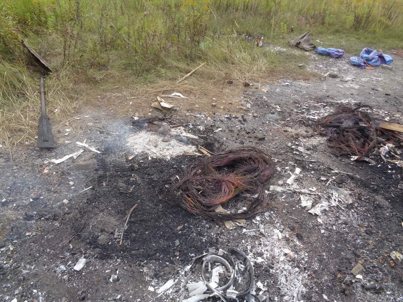 Podczas przeszukiwania zarośniętego terenu przy skrzyżowaniu ulic Świerczyny i Obrzeżnej Północnej, strażnicy zauważyli dwóch mężczyzn opalających dwa duże zwoje miedzianych kabli. Obok ogniska leżał trzeci zwój już opalonych miedzianych przewodów oraz dwa worki z różnymi elementami wykonanymi z miedzi. Mężczyzn wylegitymowano i ukarano mandatami karnymi za wykroczenie z art. 191 ustawy o odpadach oraz przekazano wezwanym na miejsce funkcjonariuszom Policji – mówi Magdalena Kawka, Zastępca Komendanta Straży Miejskiej w Mysłowicach