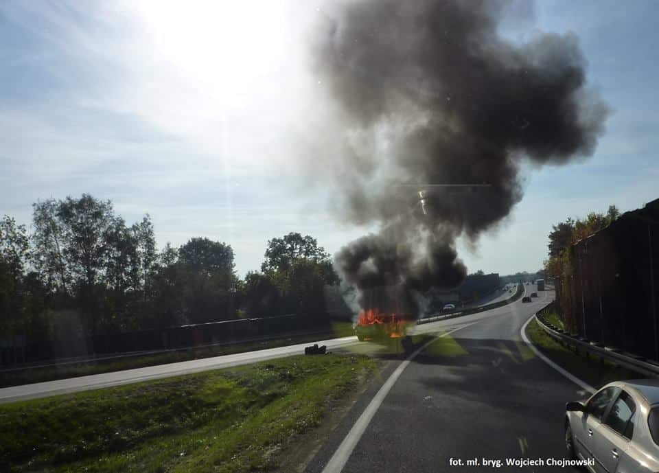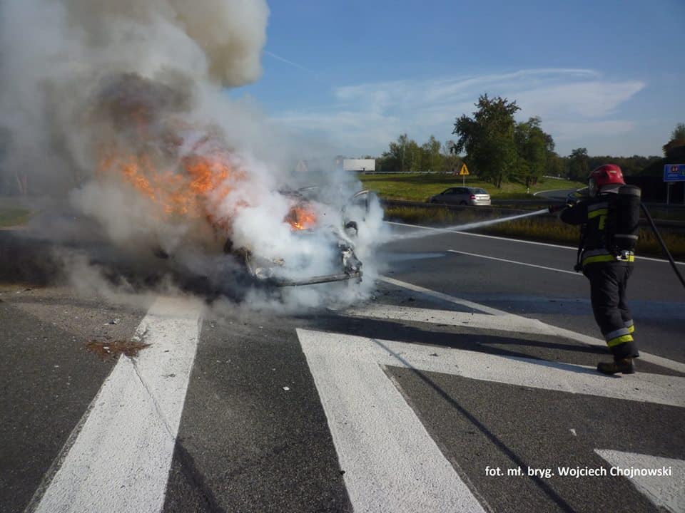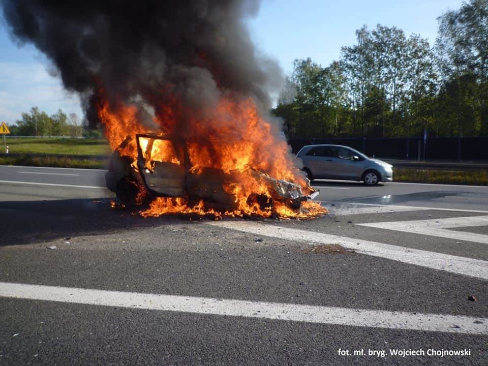 Na zjeździe z autostrady A4 na drogę S1 w kierunku na Tychy doszło do wybuchu pożaru samochodu osobowego. Pożar gasili mysłowiccy strażacy, niestety żywioł tak szybko się rozwinął, że samochód doszczętnie spłonął.