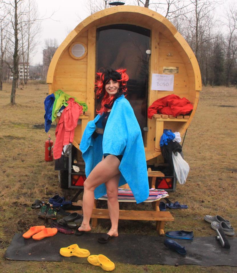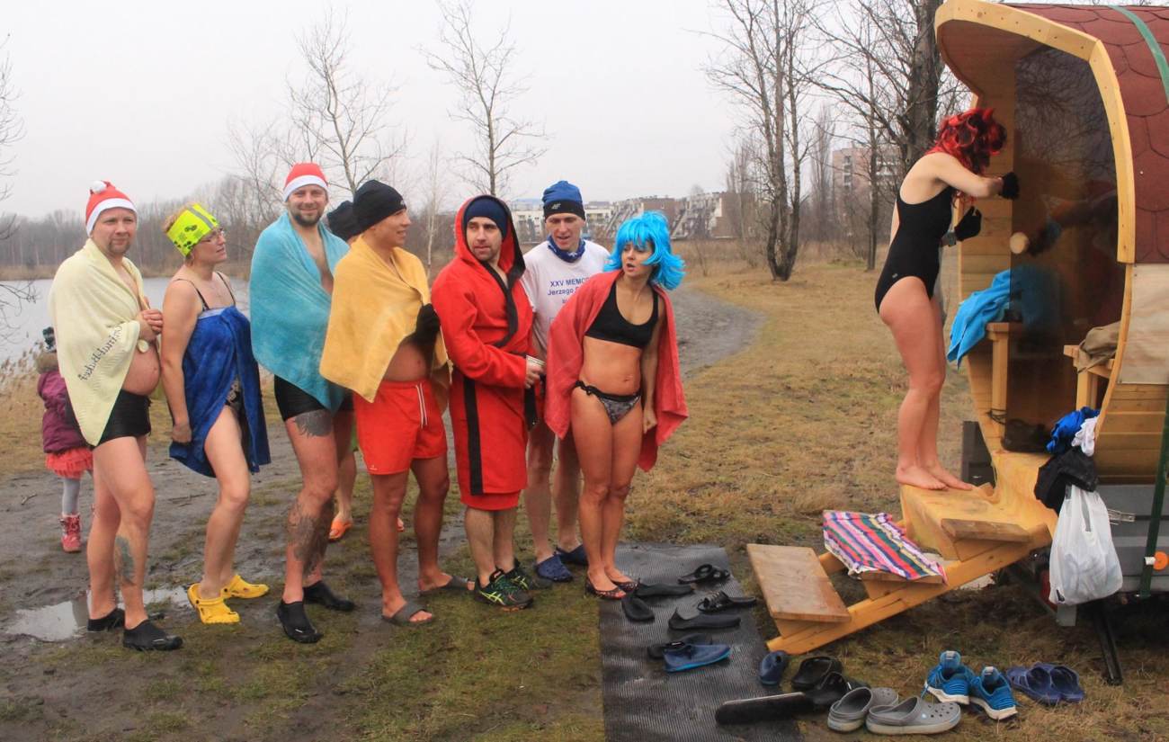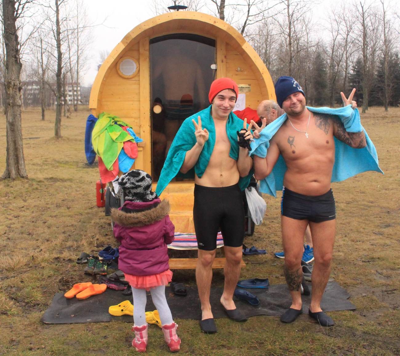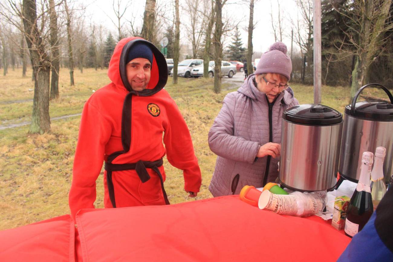 Po biegu i morsowaniu była okazja do ogrzania się, nie tylko za sprawą ciepłych napojów – na miłośników sportowej aktywności czekała mobilna, klimatyczna sauna, z której chętnie skorzystali.