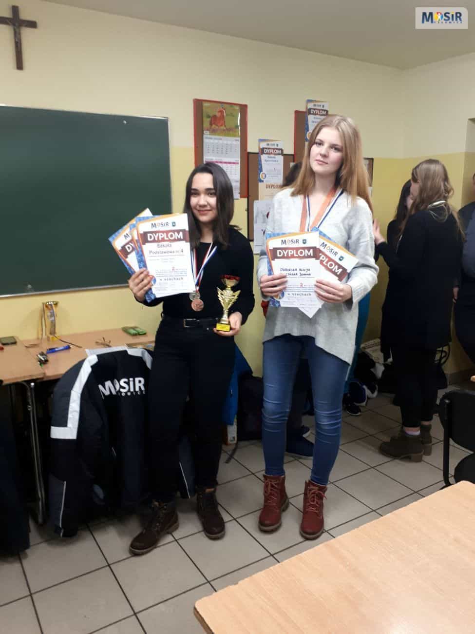 Bardzo dobrze spisała się również druga reprezentantka Szkoły Sportowej – Kinga Strzelczak, która przegrała tylko trzy partie (w tym dwie – ze swoją szkolną partnerką Kasią), i z 15 punktami w dorobku wywalczyła 2. miejsce i medal srebrny. 11 zwycięskich partii i 7 porażek zanotowała reprezentantka SP nr 4 z Bończyka – Alicja Dobińska, a to zagwarantowało jej 3. miejsce indywidualnie i medal brązowy (w ubiegłym roku szkolnym także była wysoko, bo zajęła piątą lokatę).
