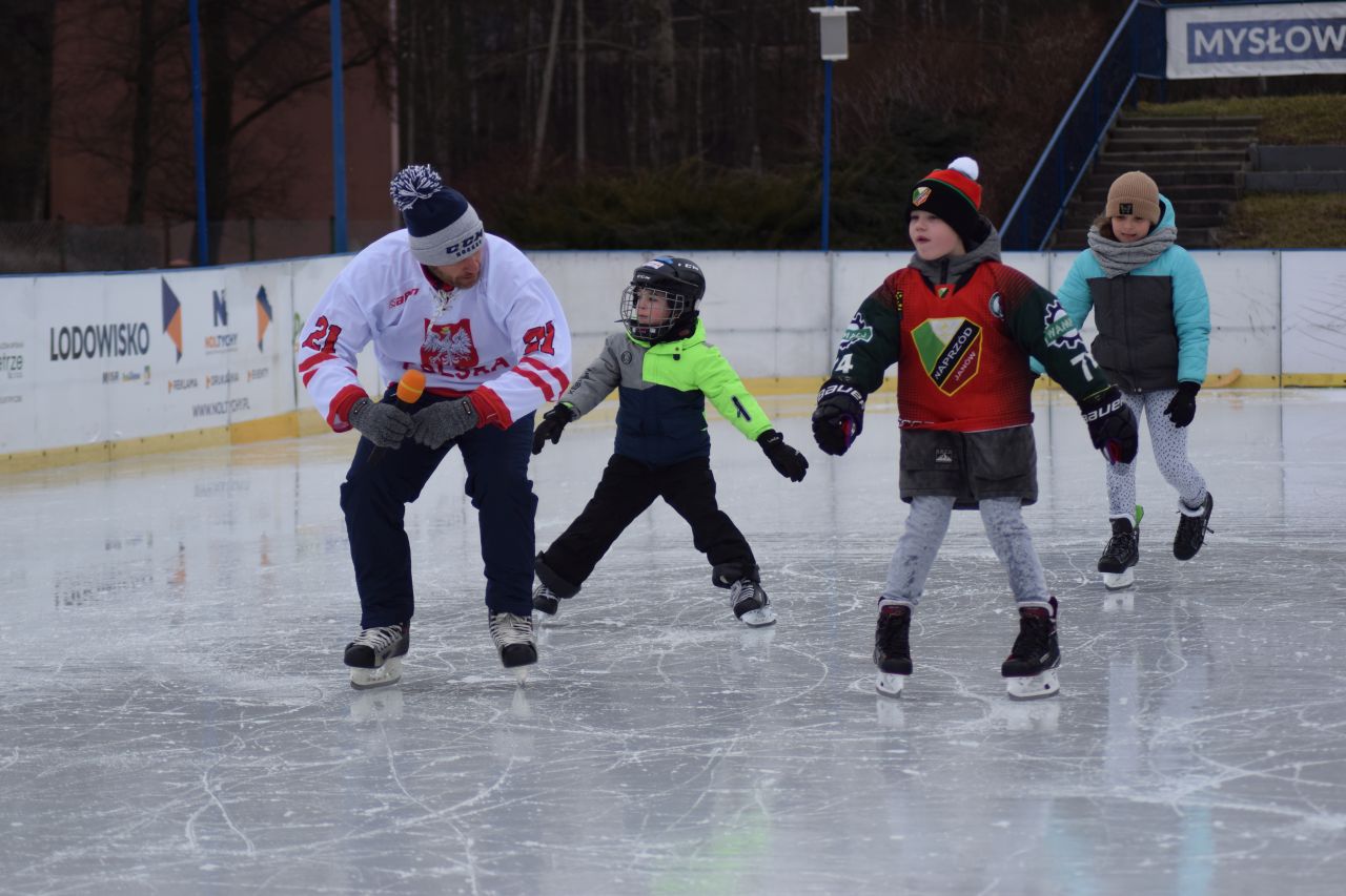 Mimo że hokej nie jest naszym sportem narodowym, tu, na Śląsku, nie brakuje miłośników tej dyscypliny i jazdy na łyżwach. Udowadnia to frekwencja na treningu z Mariuszem Czerkawskim i Adrianem Parzyszkiem, którzy po raz kolejny przyjechali do naszego miasta, by zarażać dzieciaki miłością do hokeja.
