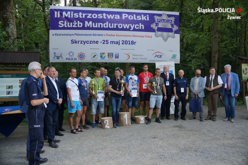 W biegu wzięło udział ponad 120 zawodników, reprezentujących różne służby mundurowe z całej Polski. Komendę Miejską Policji w Mysłowicach reprezentowali sierż. szt. Rafał Olszewski i st. post. Edward Majerski. Obok biegu głównego odbył się również bieg towarzyszący, w którym wystartowało blisko 100 uczniów ze szkół podstawowych, gimnazjalnych oraz średnich z powiatu żywieckiego. Mistrzostwa rozegrano w pięciu kategoriach: kobiety do lat 35, kobiety powyżej lat 35, mężczyźni do lat 35, mężczyźni powyżej lat 35 oraz kategoria drużynowa. Na mecie wszyscy biegacze otrzymali pamiątkowe medale. Najlepszym zawodnikiem reprezentującym Komendę Powiatową Policji w Żywcu okazał się szef żywieckich policjantów podinsp. Michał Łukasik. Mistrzostwa zorganizowane zostały z myślą o podnoszeniu sprawności fizycznej oraz propagowaniu wśród mundurowych biegów górskich. Ponadto impreza była doskonałą okazją do wymiany doświadczeń zawodowych. Najlepszym zawodnikom puchary wręczył, wspólnie z zaproszonymi gośćmi, Zastępca Komendanta Wojewódzkiego Policji w Katowicach mł.insp. Mariusz Krzystyniak. Artystyczną oprawę imprezy zapewniła Orkiestra Komendy Wojewódzkiej Policji w Katowicach.