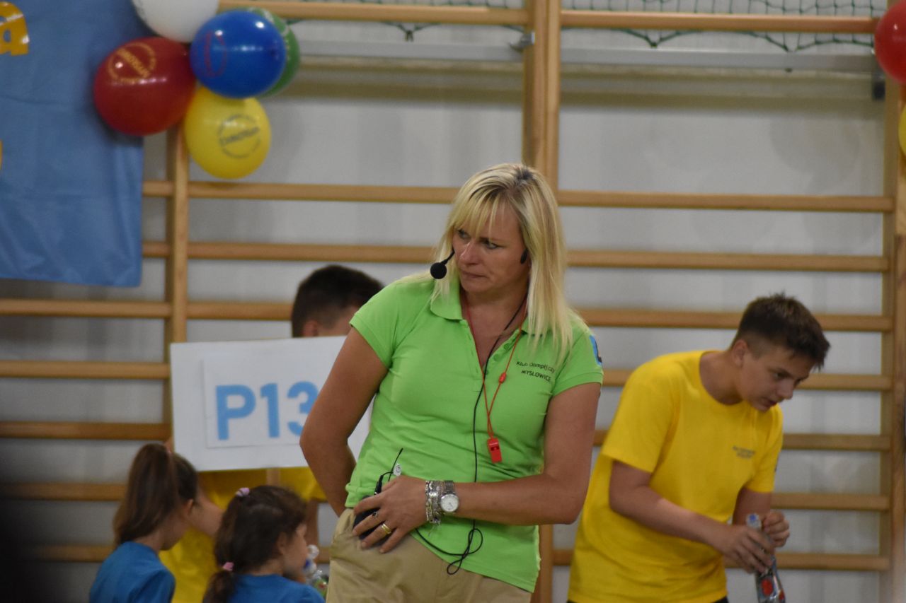 – Wykorzystujemy różny rodzaj sprzętu, żeby te zabawy były atrakcyjne. I skoki na „żabkach”, i z balonami, i przenoszenie, i wyścig z „pochodniami”, i „sadzenie ziemniaków” – wylicza Ewa Bień, prezeska Klubu Olimpijczyka i nauczycielka w Szkole Sportowej im. Olimpijczyków Śląskich w Mysłowicach.