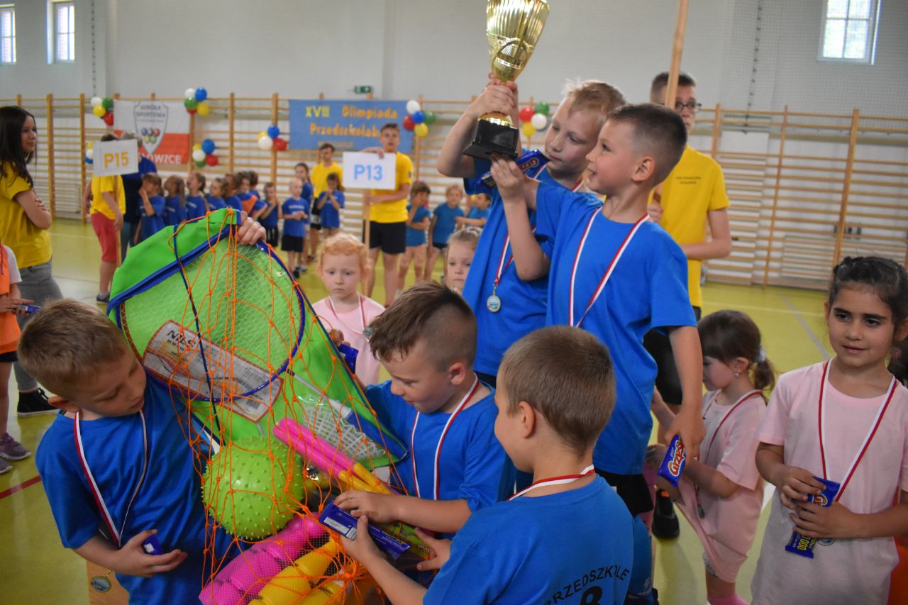 Przedszkola z Mysłowic i okolic otrzymują zaproszenia na imprezę już sporo wcześniej, wraz z zestawem zabaw, które pojawią się na olimpiadzie, by dzieciaki mogły wcześniej potrenować. Potem jest już jak na prawdziwych igrzyskach: są sędziowie ze stoperami, kibice i końcowa klasyfikacja, w której w tym roku triumfowały maluchy z Przedszkola nr 15 na Wesołej. Jak na olimpiadę przystało, były też cenne trofea.
