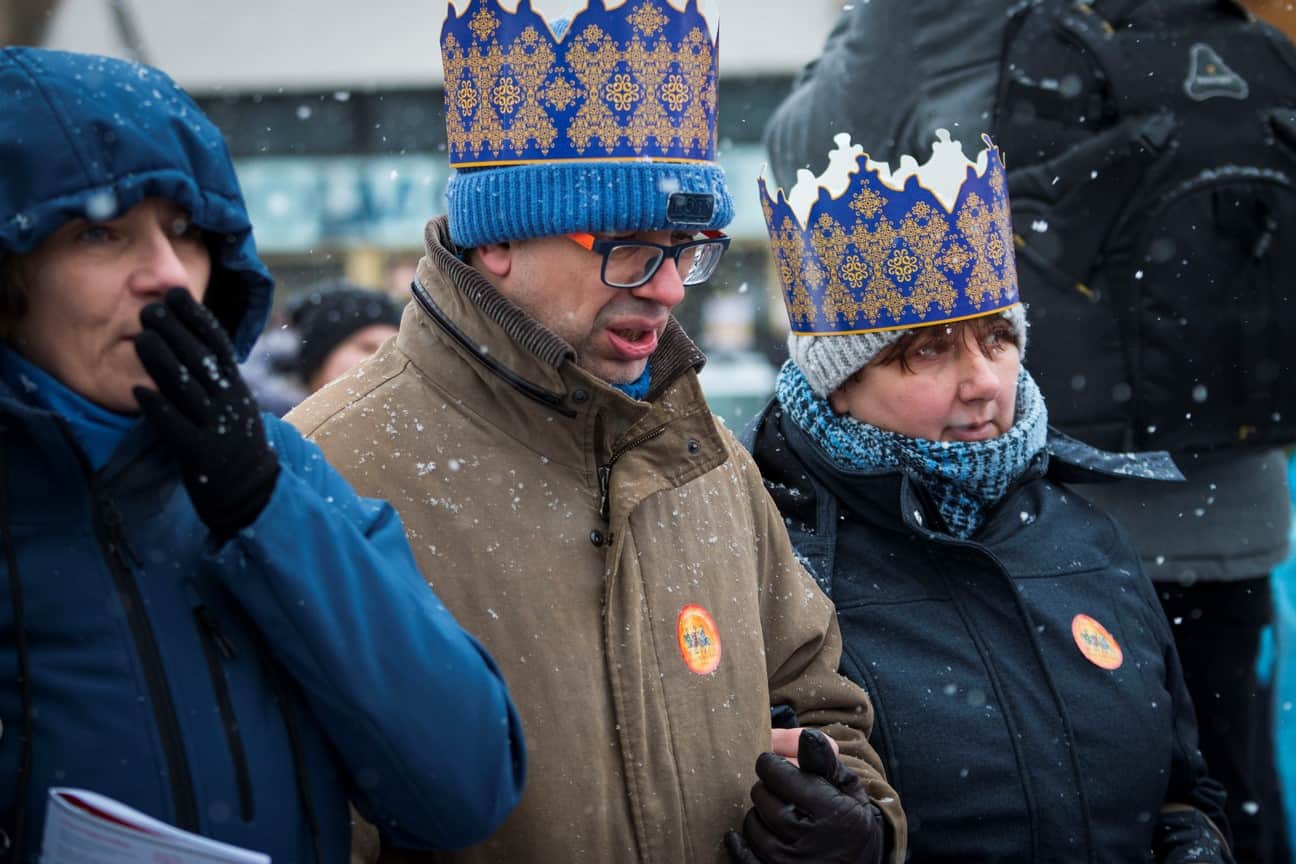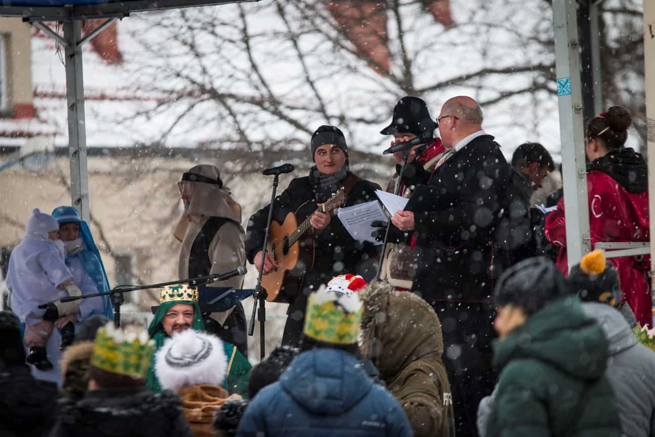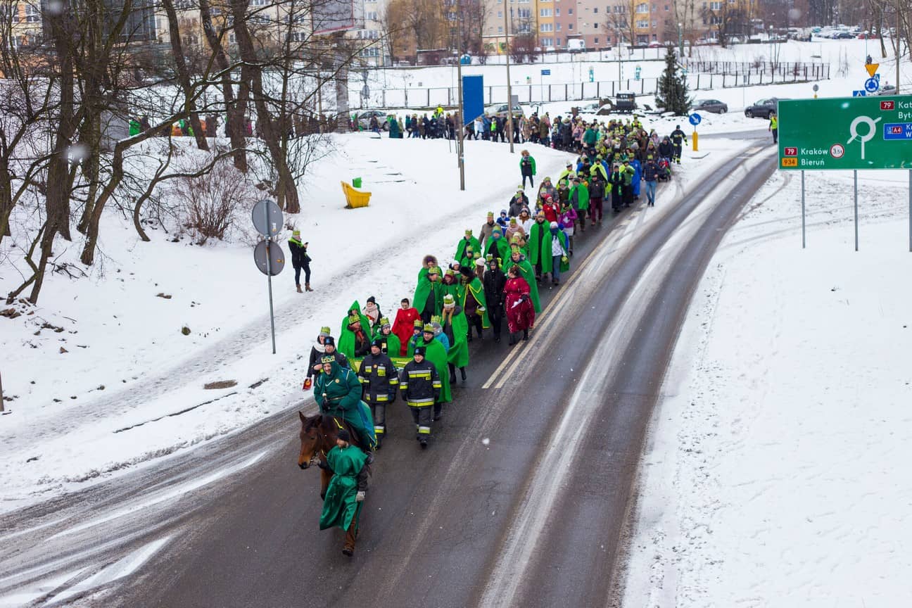 Niestraszny był im śnieg i mroźna aura. Liczni mieszkańcy przeszli ulicami Mysłowic w kolorowych orszakach trzech króli. Z różnych stron miasta Kacper, Melchior i Baltazar, podążając za betlejemskimi gwiazdami, przyprowadzili wiernych na Rynek. Tam przywitali nowonarodzonego Jezusa.
