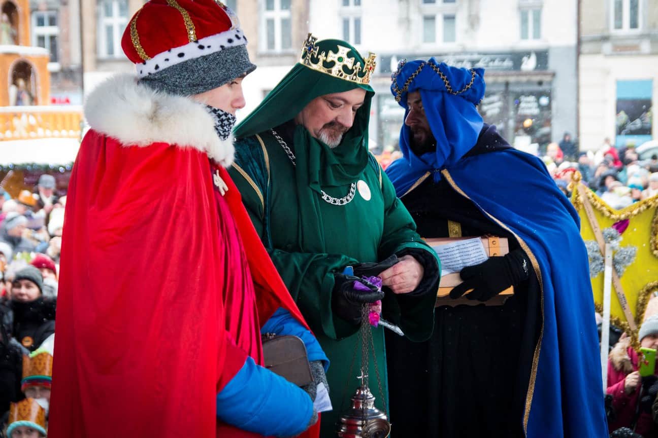 Orszaki miały trzy kolory: niebieski poprowadził król Baltazar, zielony król Melchior, a czerwony król Kacper. Najdłuższą trasę miał do pokonania orszak króla Baltazara z Brzęczkowic, a najkrótszą orszak króla Kacpra. Po przybyciu na Rynek Trzej Królowie złożyli Dzieciątku dary, po czym rozpoczęło się wspólne kolędowanie.