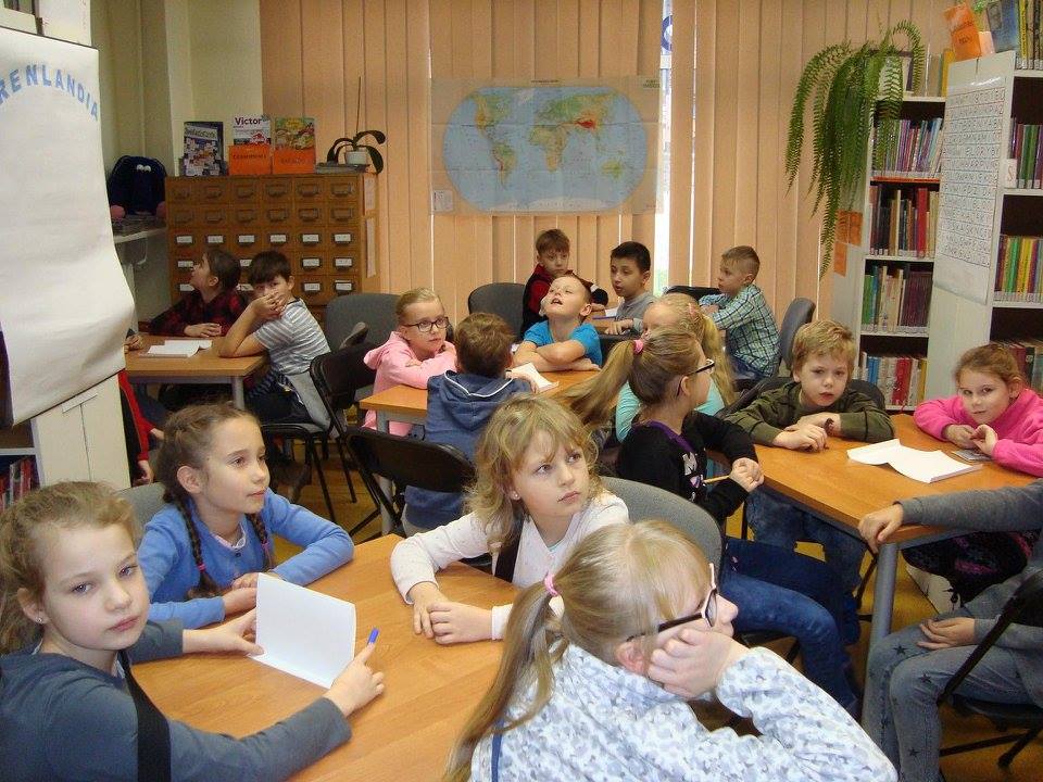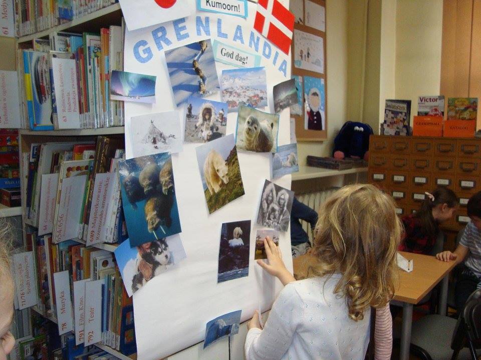 Zajęcia przeprowadzone dla uczniów z klasy III – Szkoły Podstawowej nr 6 rozpoczęto wskazaniem na mapie Grenlandii oraz podaniem najważniejszych informacji o tej największej wyspie świata. Dzieci pracowały w grupach – osadach, których nazwy wymyślały samodzielnie. Pierwsze zadanie polegało na rozwiązaniu testu ze znajomości przeczytanej lektury, a następnie wszystkie osady skupiły się na wykonaniu planszy „Zielonej Wyspy”. W tym celu rozdano zestawy krajobrazów, ludzi, zwierząt, flag, a także pozdrowień z różnych stron świata, z których uczestnicy mieli rozpoznać te właściwe.