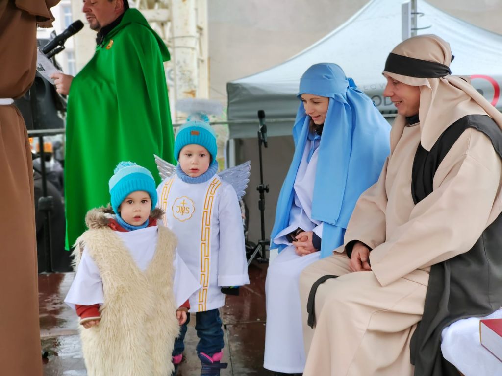 Wszystkie trzy orszaki spotkały się ok. godz. 14:00 na rynku. Królowie oddali tu cześć świętej rodzinie, w którą wcielili się Aldona i Artur Sapetowie wraz z synami Wiktorem, Kacprem i Florianem.