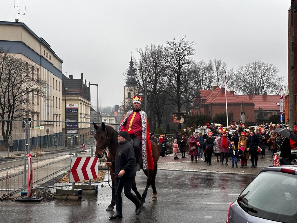 Tradycyjnie w naszym mieście Trzej Królowie wyruszyli z trzech różnych miejsc. O godz. 13:00 orszak afrykański (niebieski) wymaszerował sprzed kościoła Matki Boskiej Bolesnej na Brzęczkowicach. W postać króla Baltazara już po raz czwarty wcielił się Rafał Myrda. O tej samej porze orszak azjatycki (zielony) wystartował z parkingu przy sklepie Lewiatan przy ul. Chopina. W roli króla Melchiora zadebiutował Andrzej Pułka. O godz. 13:15 sprzed kościoła Najświętszego Serca Pana Jezusa na Starym Mieście wyruszył orszak europejski króla Kacpra, którym był, także po raz czwarty, Sławek Bajor.