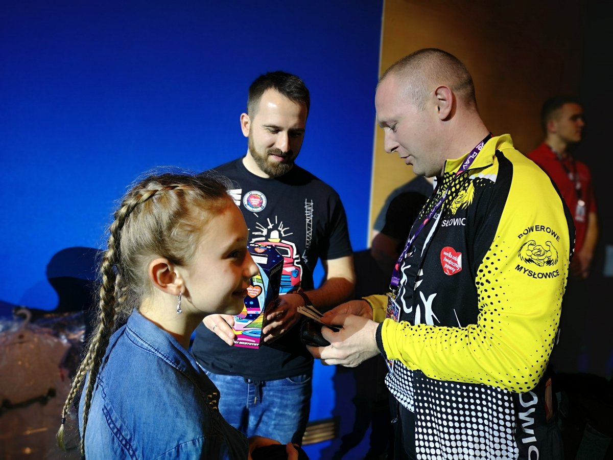 Nie zabrakło też licytacji kilkudziesięciu przedmiotów od darczyńców, z których uzbierano kwotę 6 869 zł. Do wylicytowania była m.in. kolacja z prezydentem Dariuszem Wójtowiczem czy koszulka Mariusza Czerkawskiego. Najwyższą kwotę uzyskała koszulka grupy Rowerowych Mysłowic z logiem WOŚP, która została wylicytowana za 600 zł przez członka grupy.