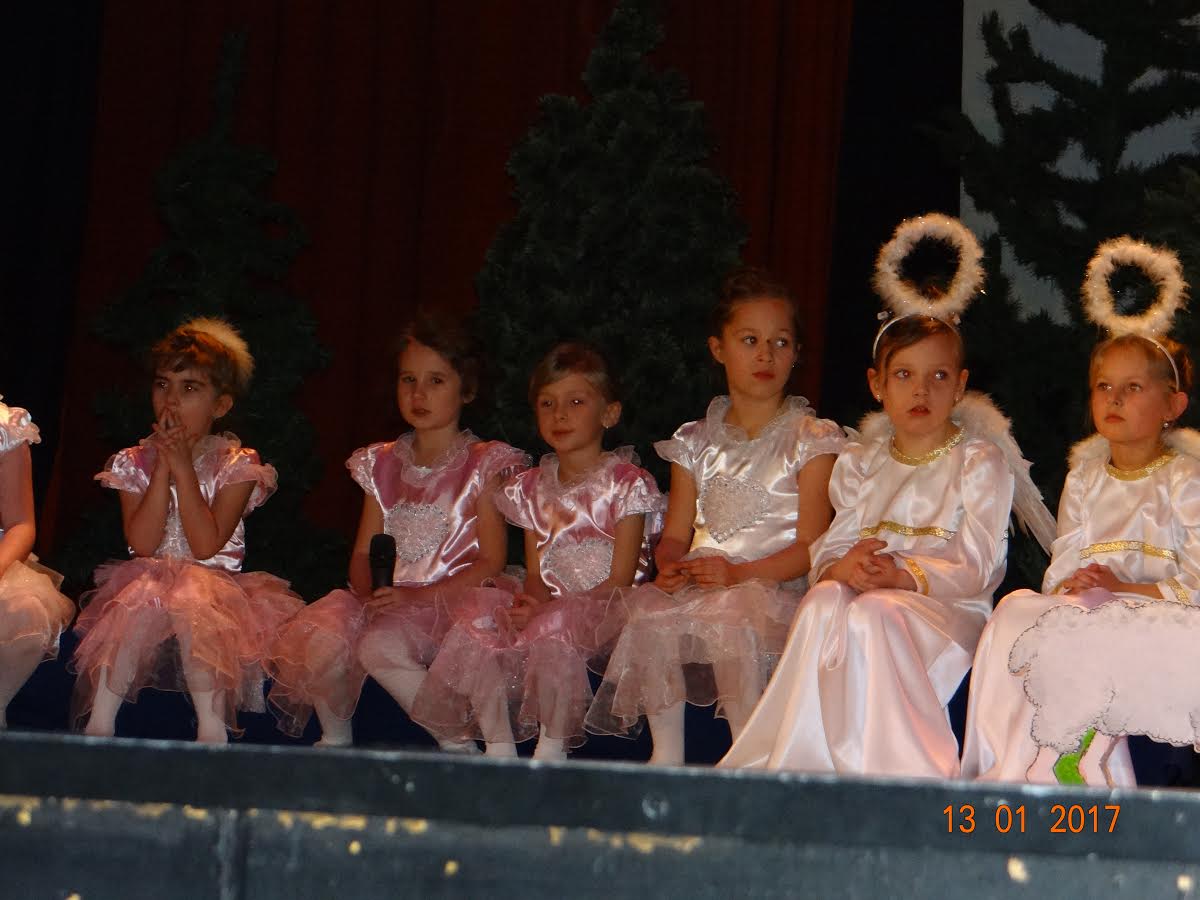 Jasełka przygotowały: Sandra Haranek, Aleksandra Wróbel, Karolina Gryciuk i Magdalena Berłowska. Tegoroczne przedstawienie było nietypowe. Do stajenki zawitały bowiem znane postaci z bajek (m.in. Dziewczynka z zapałkami, Jaś i Małgosia, Pinokio, Czerwony Kapturek, Pszczółka Maja czy Kopciuszek). Przedszkolaki z wielkim entuzjazmem wypowiadały swoje kwestie, uświadamiając widowni istotę Świąt Bożego Narodzenia.