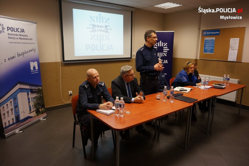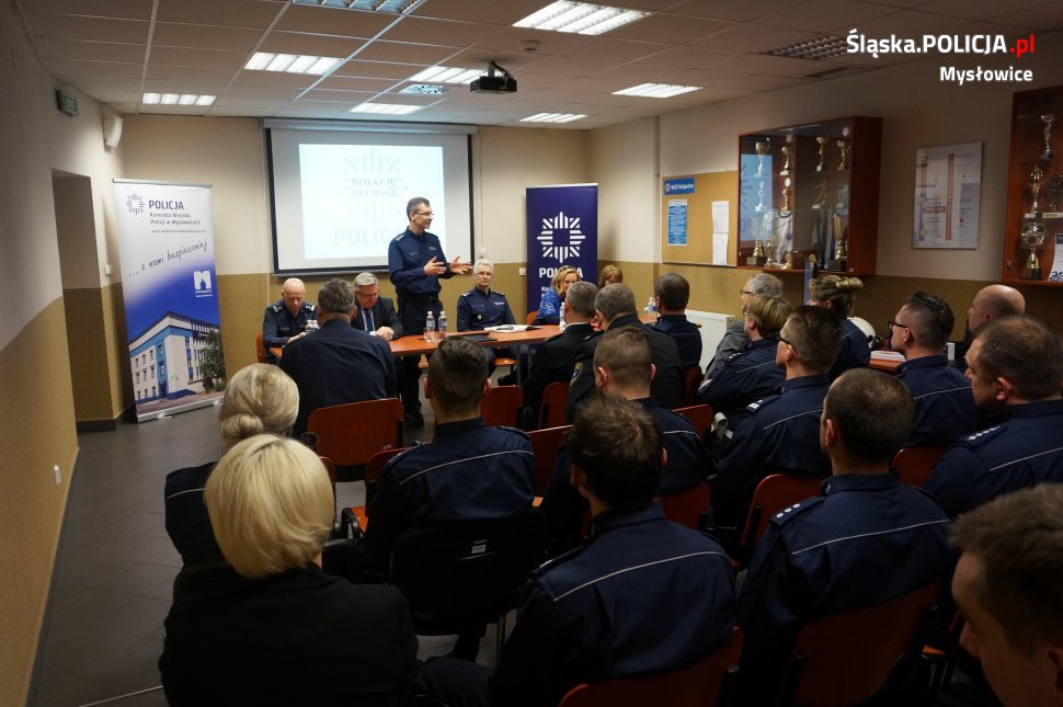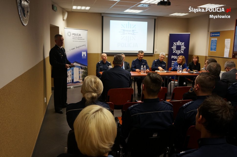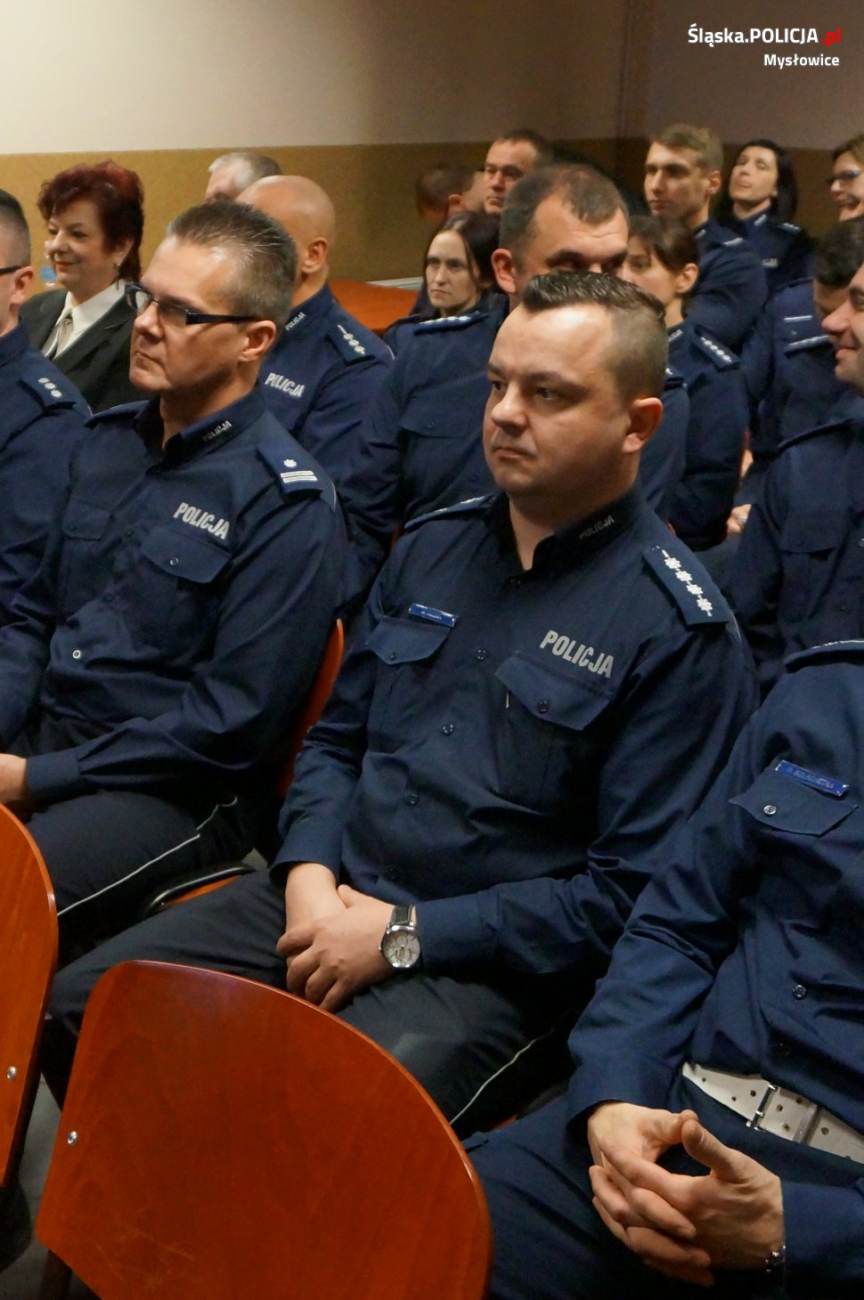 Szef mysłowickiej jednostki podsumował efekty ubiegłorocznej pracy policjantów Komendy Miejskiej Policji w Mysłowicach oraz wskazał zadania do realizacji w 2018 roku. nadkom. Dariusz Koniak podziękował za dotychczasową pracę wszystkim policjantom oraz pracownikom cywilnym. Odrębne podziękowania skierował do władz samorządowych za wsparcie przedsięwzięć podejmowanych na rzecz poprawy bezpieczeństwa oraz za dofinansowanie do zakupu 2 pojazdów służbowych oznakowanych,zakup kamery cyfrowej, alkomatu stacjonarnego, noktowizora, sprzętu elektronicznego oraz kasków do skuterów służbowych.