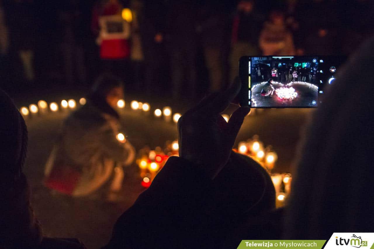 Ustawiając znicze w obrysie serca, mieszkańcy Mysłowic wysłuchali dwóch utworów: „Sound of Silence”, które już zawsze będzie się nam kojarzyć z zamordowanym Pawłem Adamowiczem oraz „Dziwny jest ten świat” Czesława Niemena. Mysłowice wysłały też laserowe światełko do nieba.