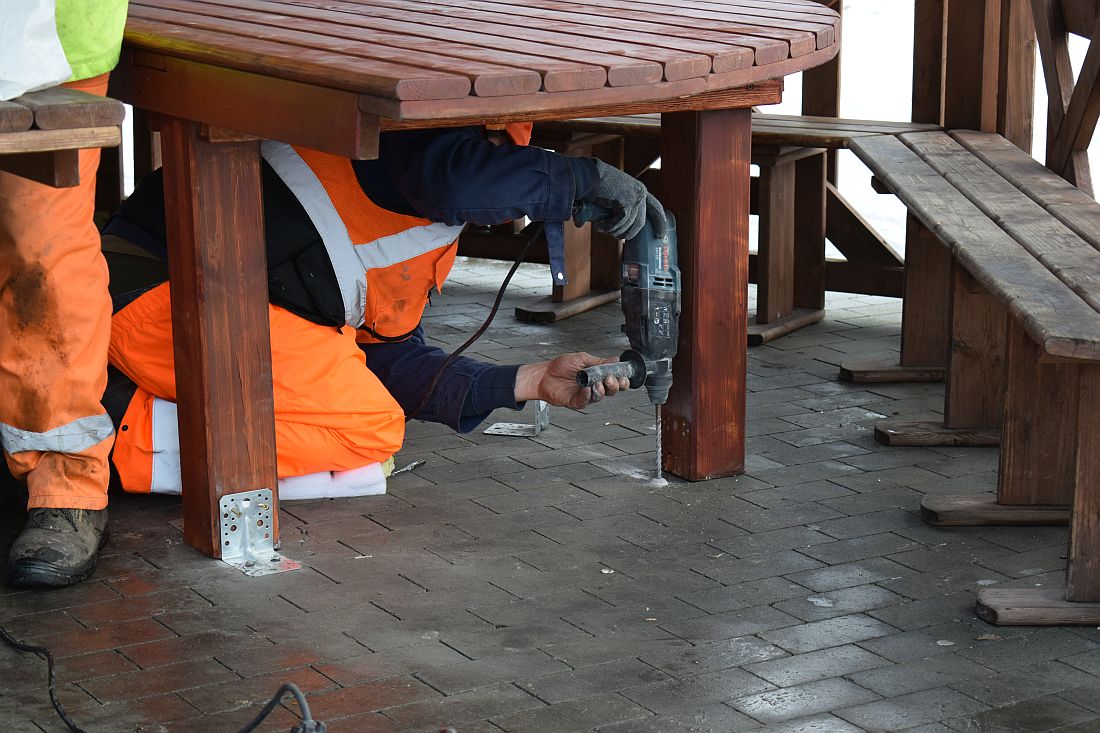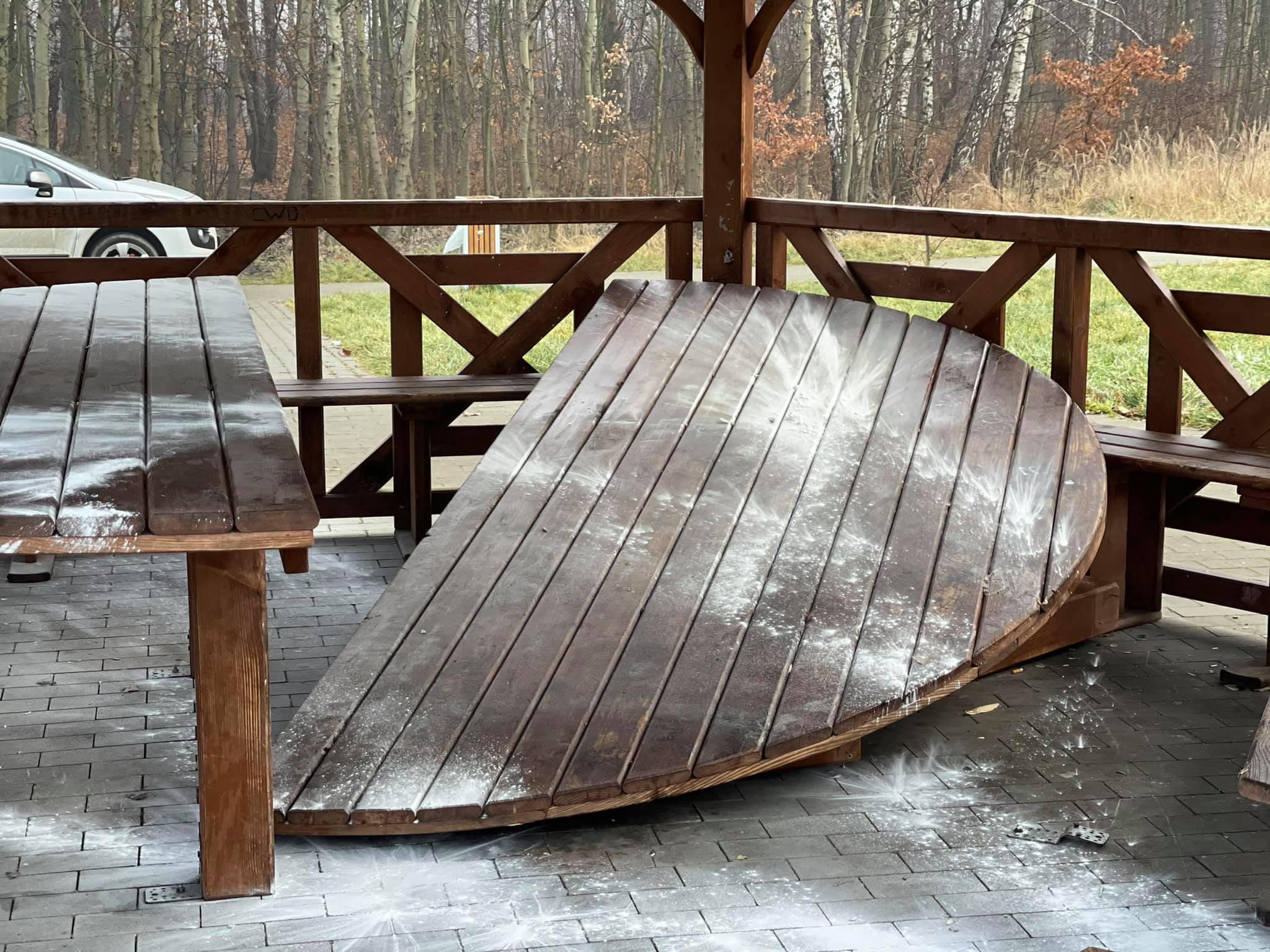 – Stół został oczyszczony, oszlifowany i na nowo zabejcowany. To samo czeka drugą jego część. Wcześniej wyczyściliśmy także zniszczone ławki i elementy wiat. Naprawiamy również palenisko – mówi Marcin Podsiadło, prezes ZOMM-u.