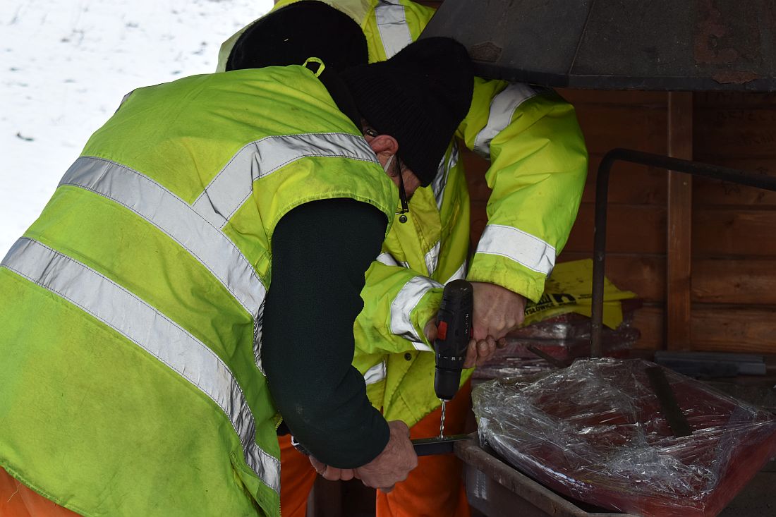 Zniszczone przez wandali elementy wyposażenia Górki Słupeckiej po renowacji wróciły dziś na swoje miejsce. Na wiosnę ZOMM planuje odświeżenie wszystkich drewnianych konstrukcji w tym miejscu.
