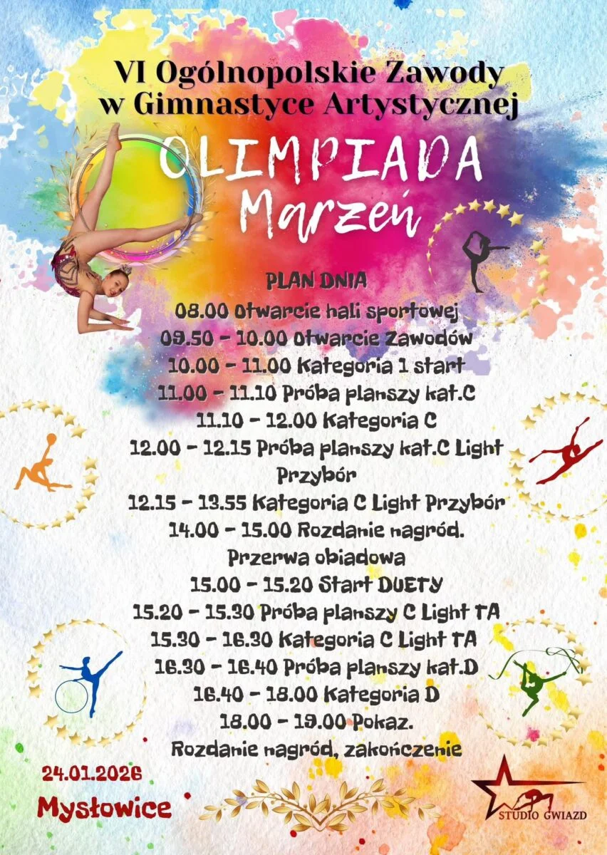 24 lutego 2025 roku w Mysłowicach odbędą się VI Ogólnopolskie Zawody w Gimnastyce Artystycznej organizowane przez Studio Gwiazd – Gimnastyka Artystyczna.